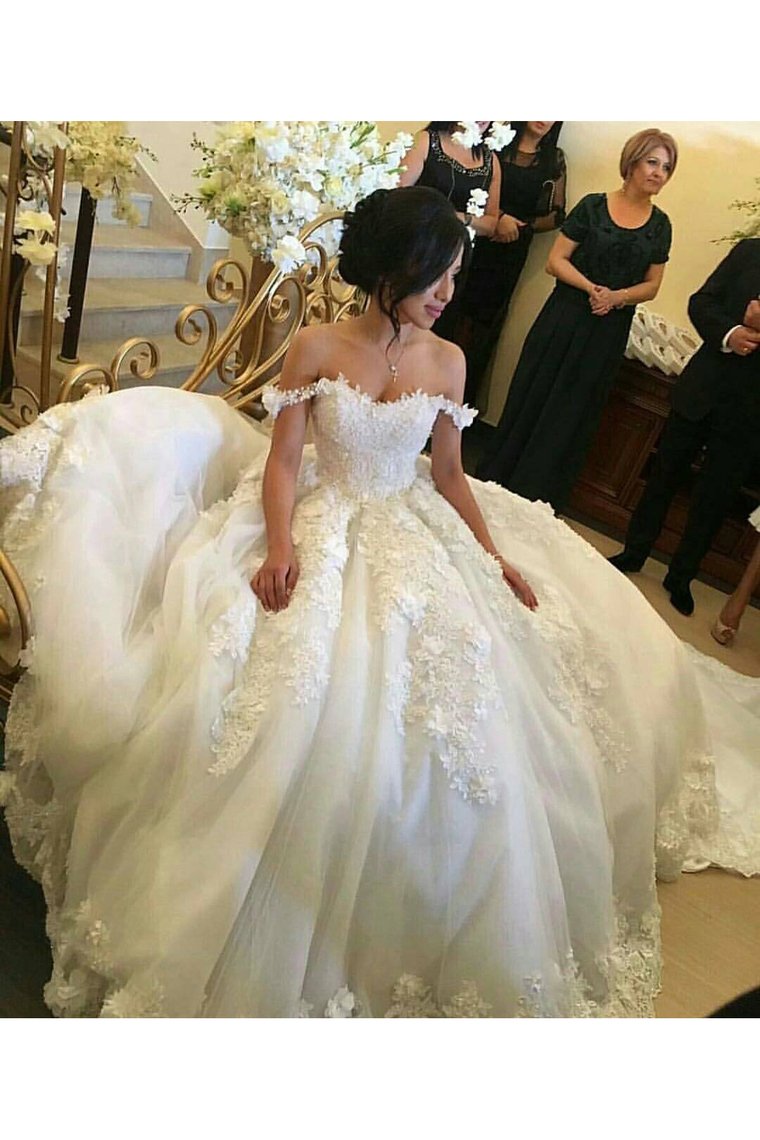 2024 Wedding Dresses Off The Shoulder A-Line Tulle With Applique Court Train