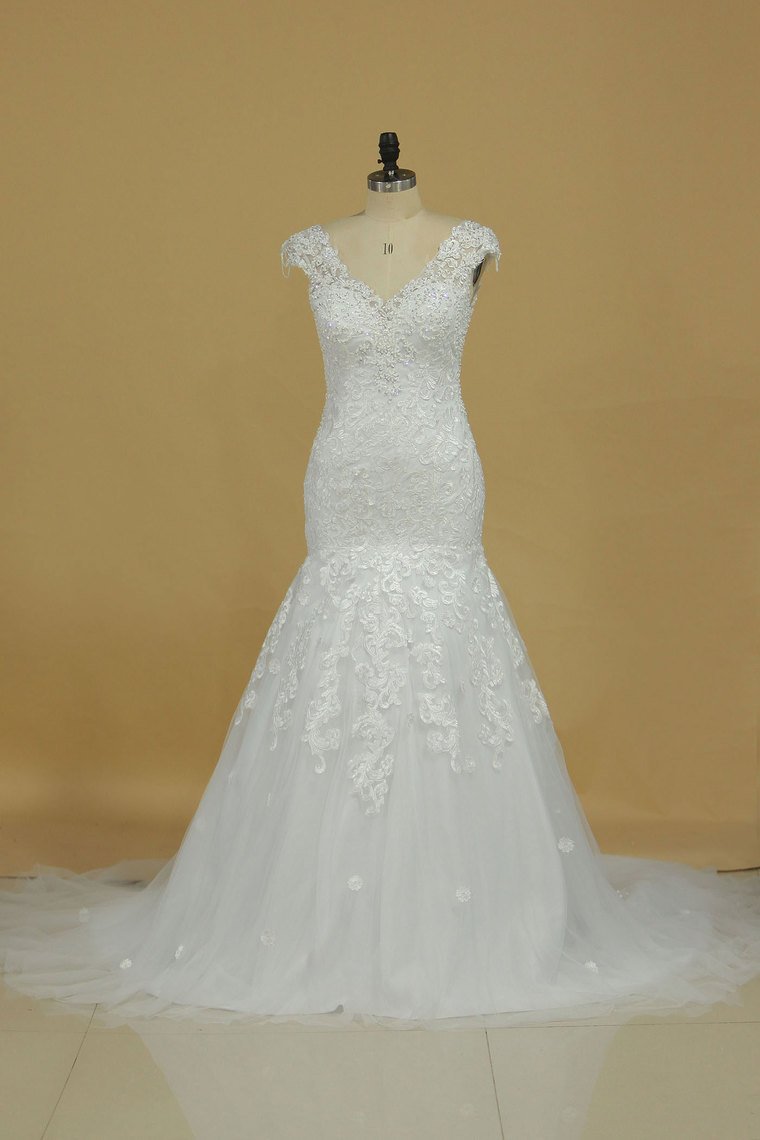2024 Wedding Dresses Off The Shoulder With Applique And Beads Mermaid/Trumpet