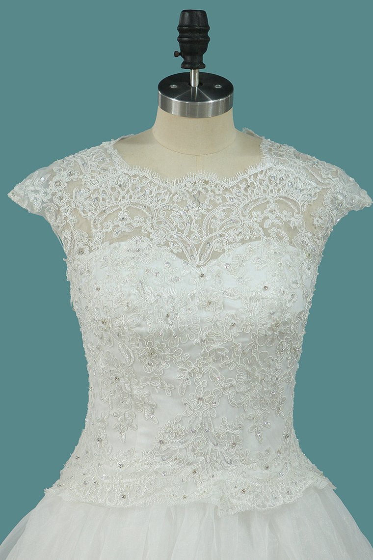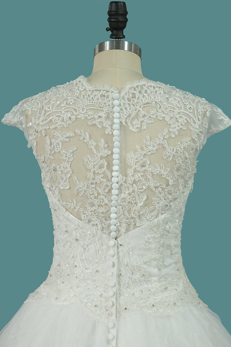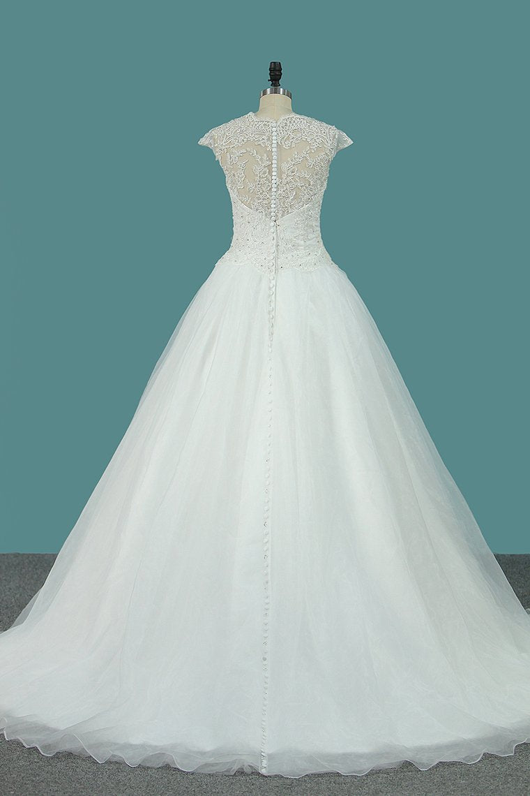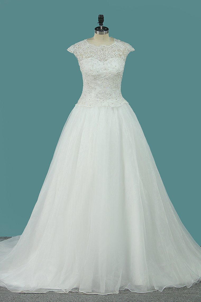 2024 Wedding Dresses Scoop A Line Organza With Applique And Beads