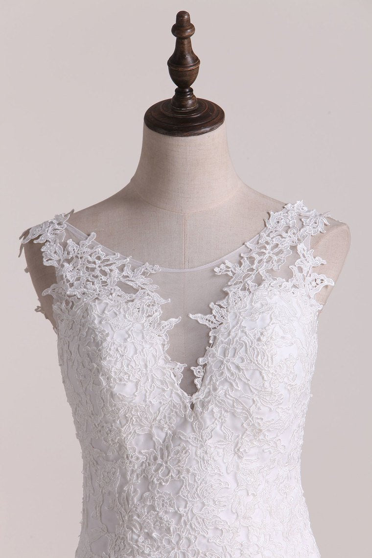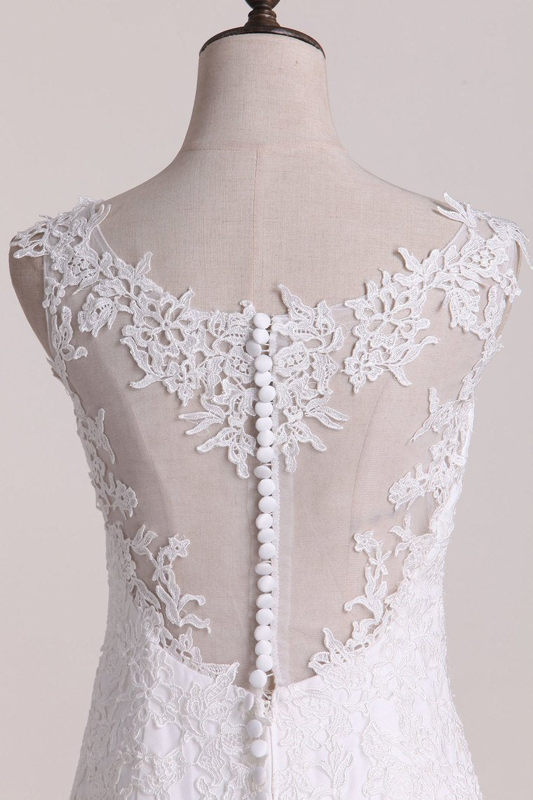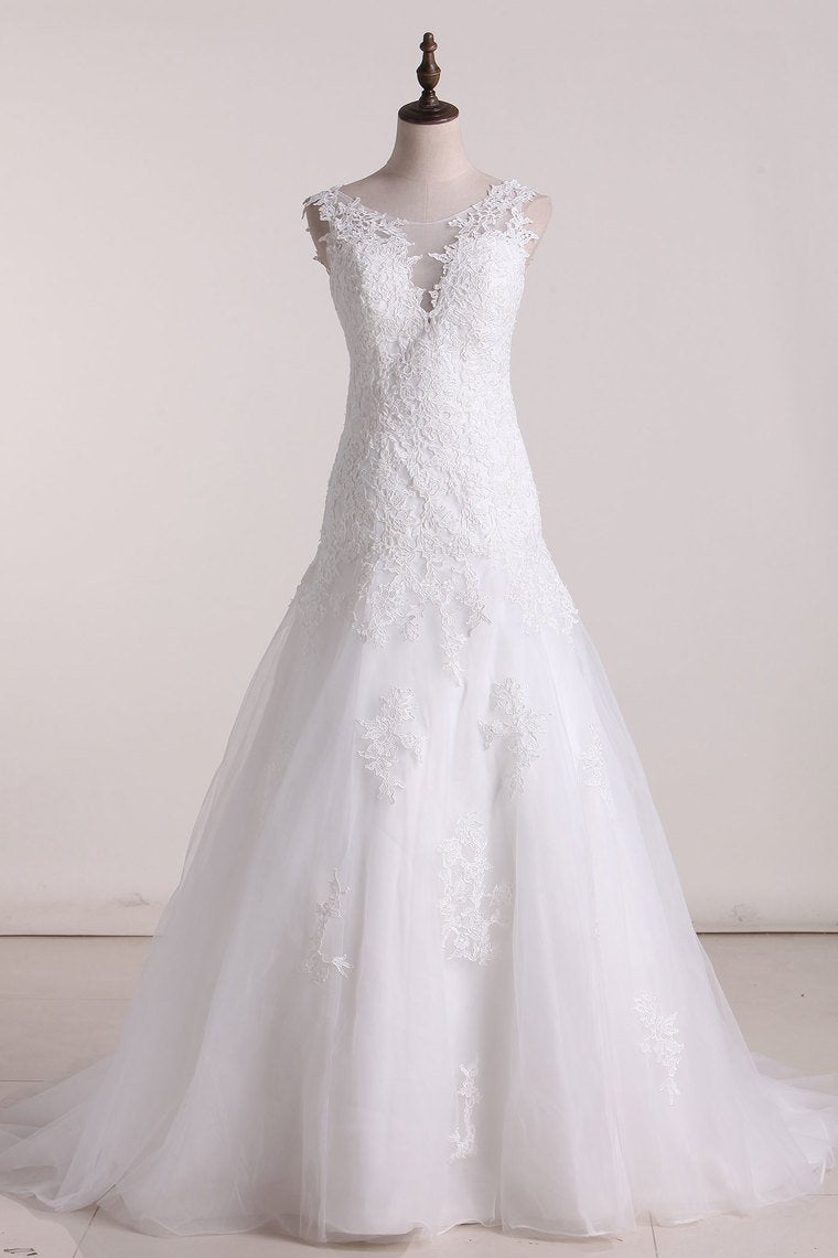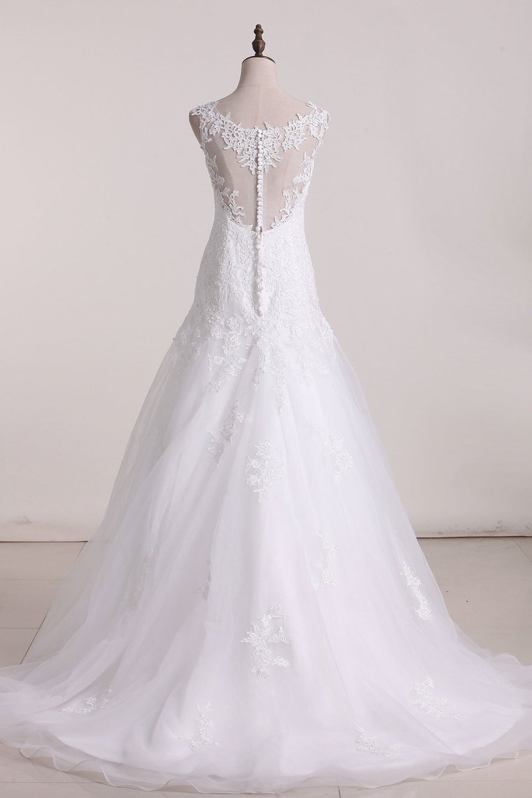 2024 Wedding Dresses Scoop A Line Tulle With Applique