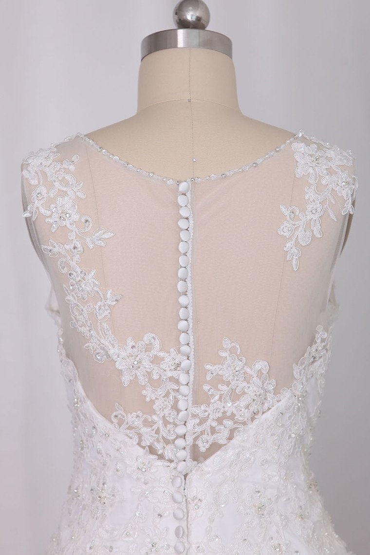 2024 Wedding Dresses Scoop A Line With Beads And Applique