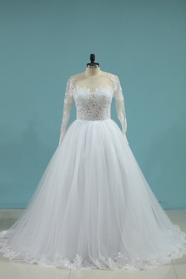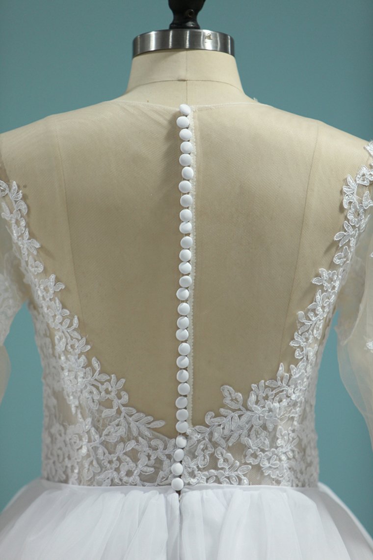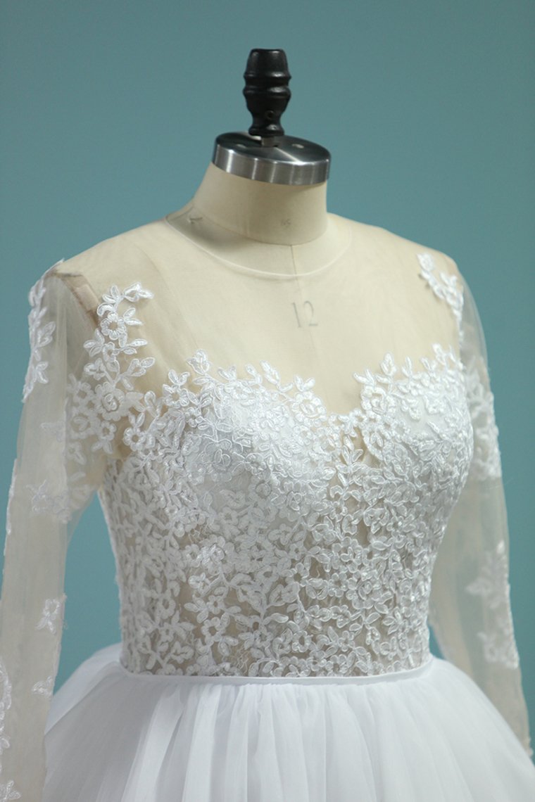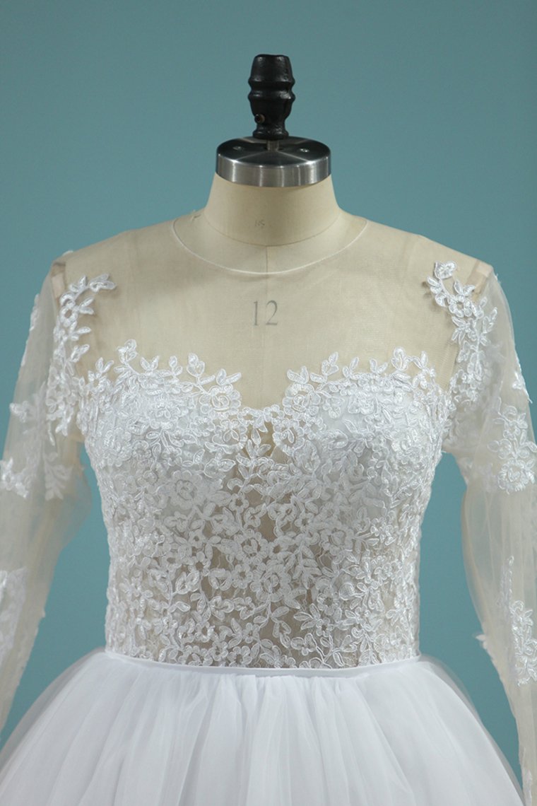 2024 Wedding Dresses Scoop Long Sleeves A Line Tulle With Applique