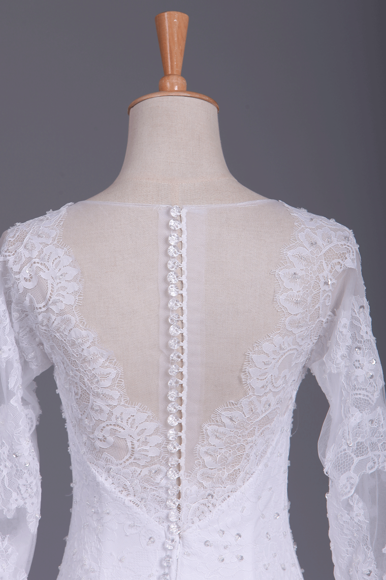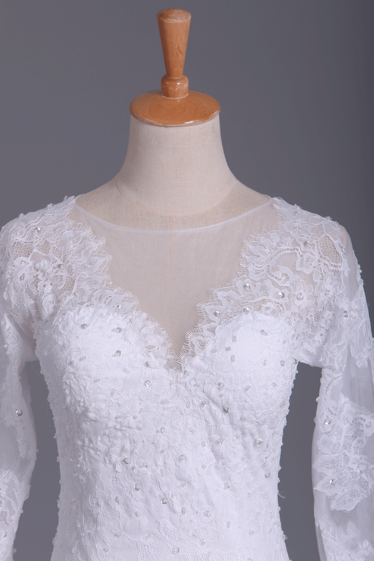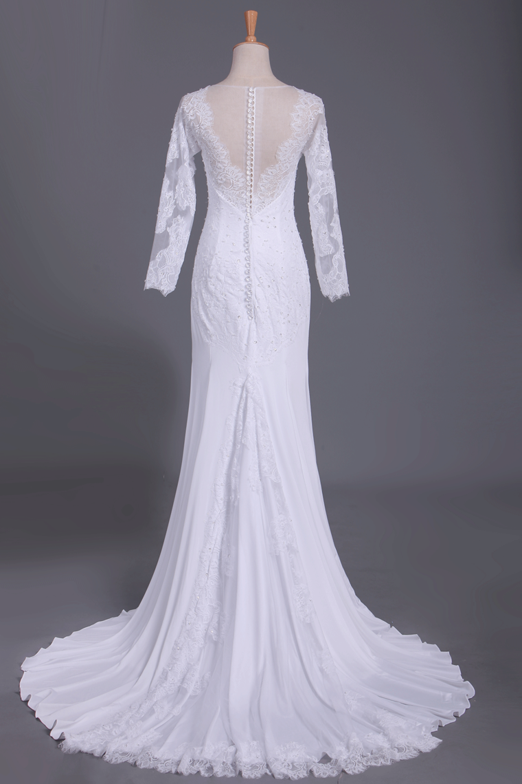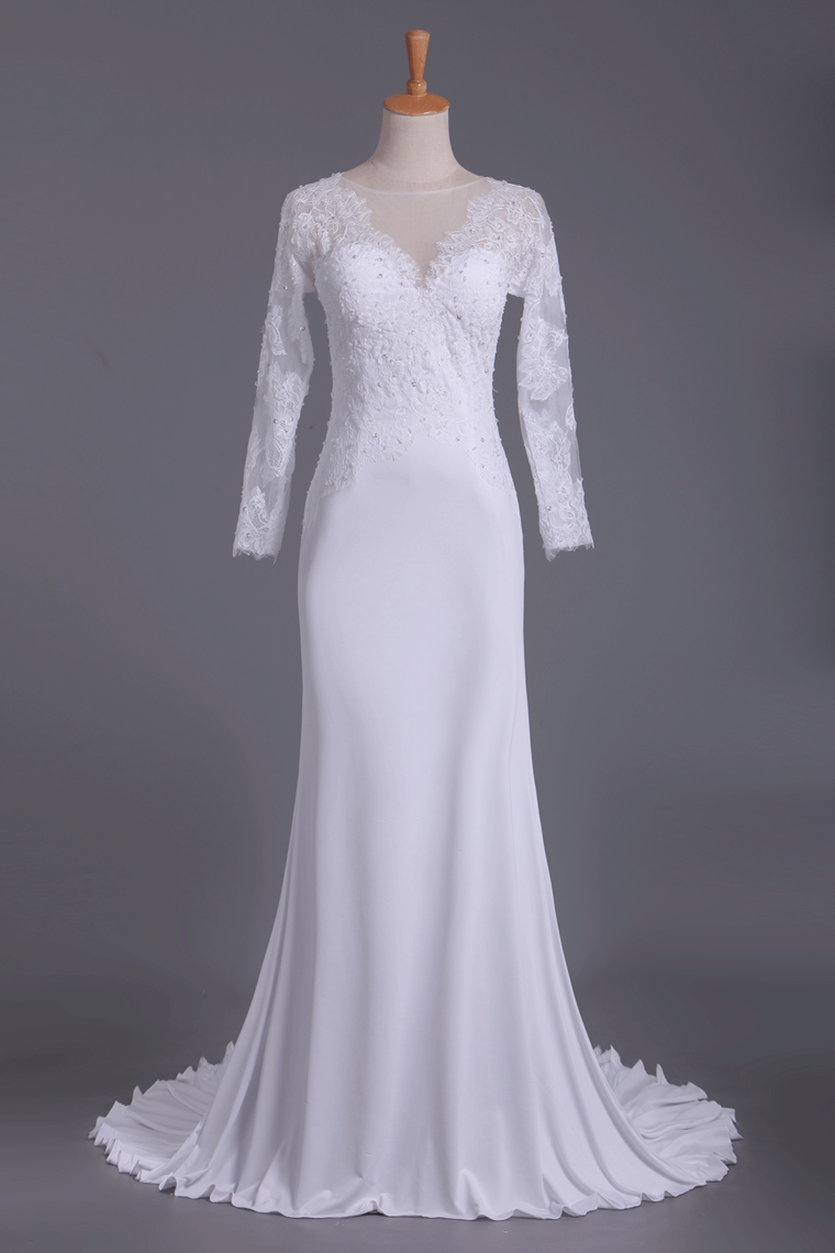 2024 Wedding Dresses Scoop Long Sleeves Spandex Court Train With Applique