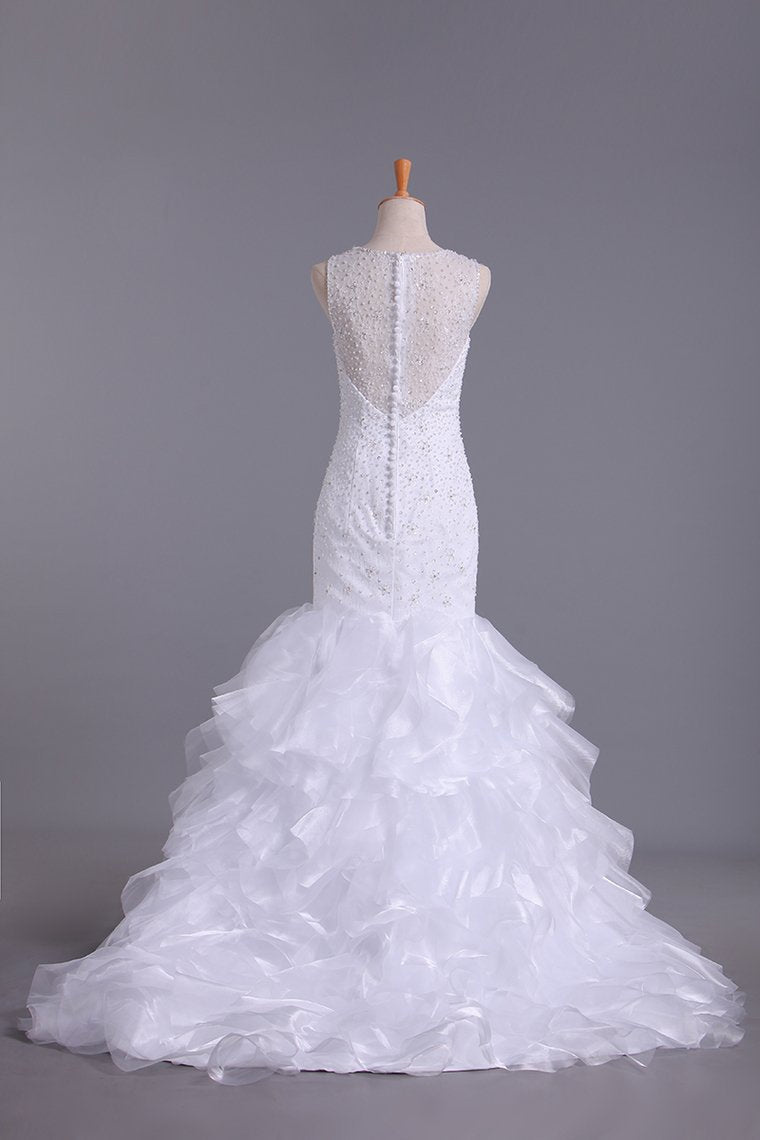 2024 Wedding Dresses Scoop Mermaid Court Train Organza Court Train