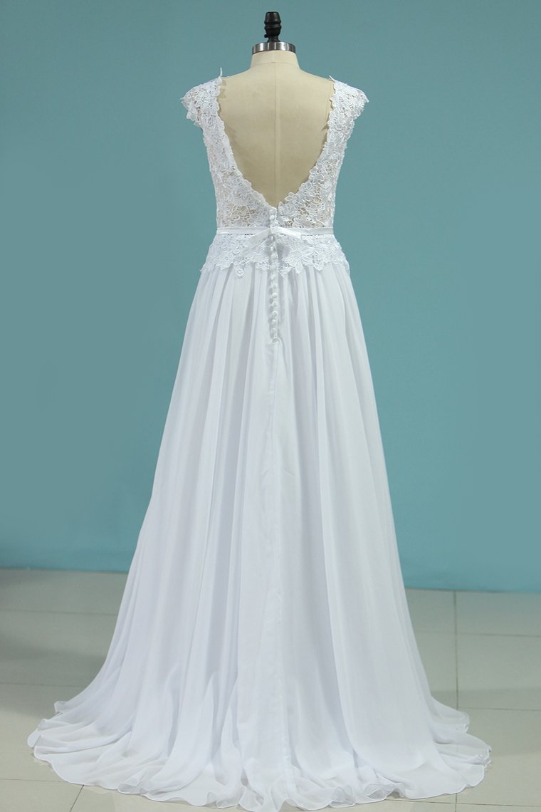 2024 Wedding Dresses Scoop Open Back Chiffon With Applique And Sash