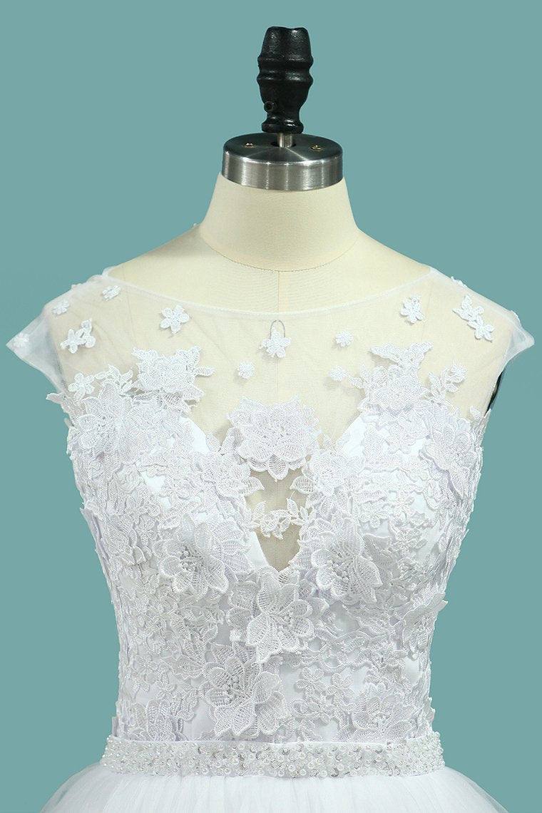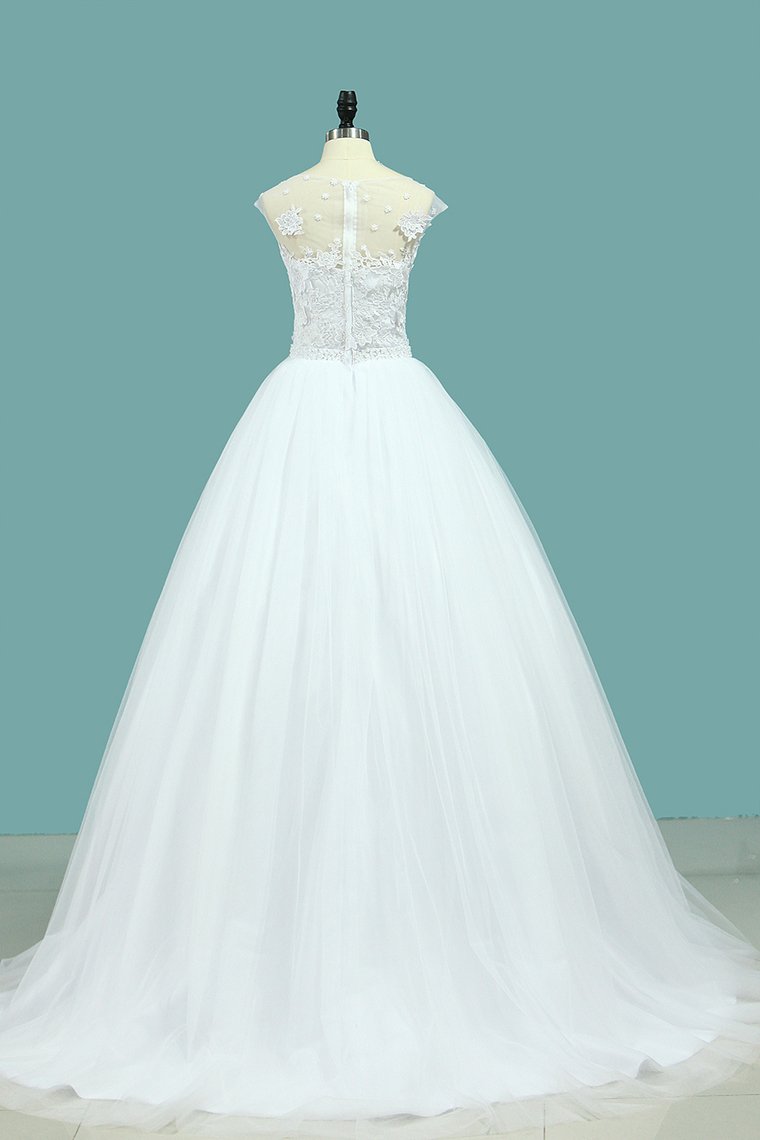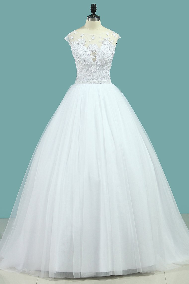 2024 Wedding Dresses Scoop Tulle With Applique A Line Court Train