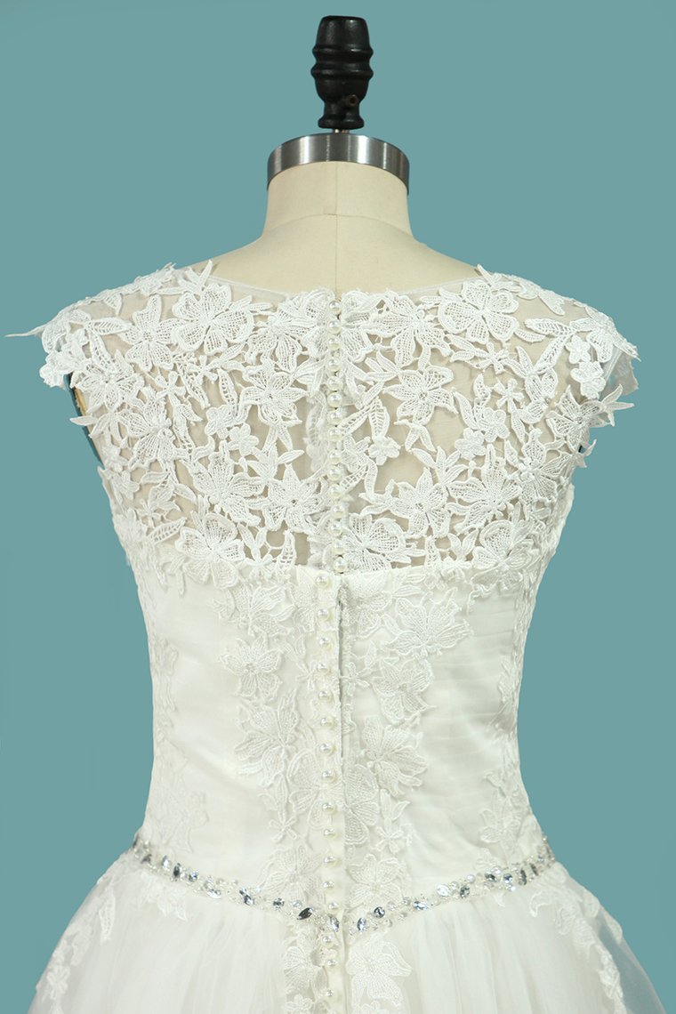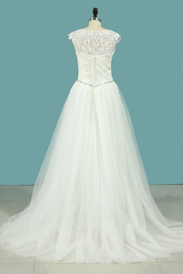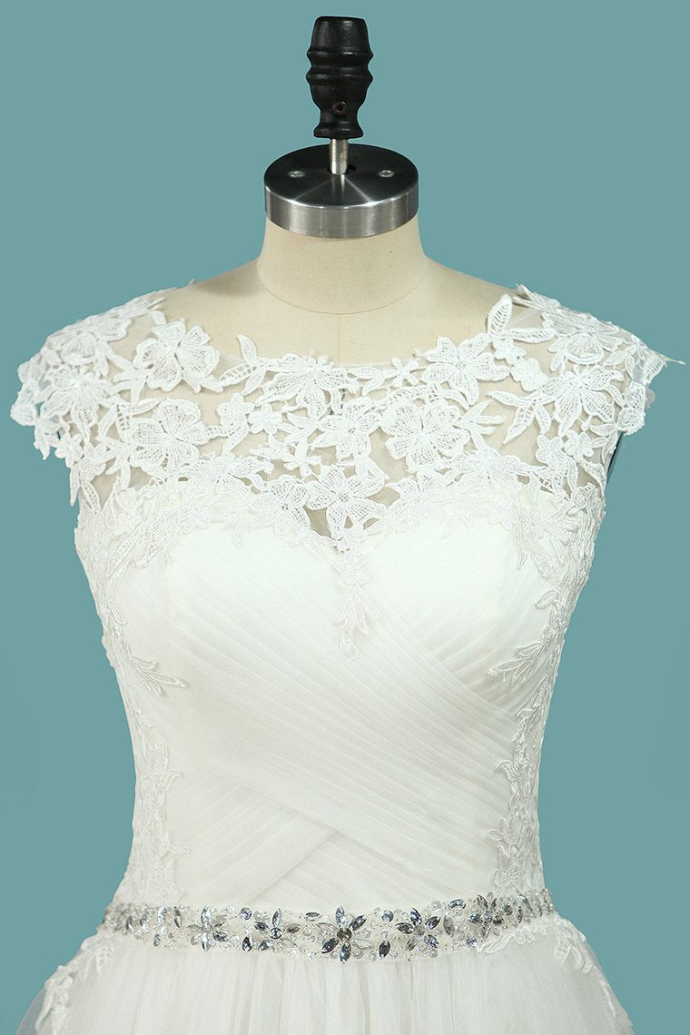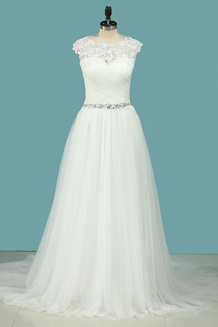 2024 Wedding Dresses Scoop Tulle With Applique And Ruffles Sweep Train