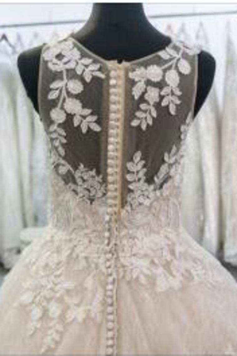2024 Wedding Dresses Scoop With Applique And Beads Tulle
