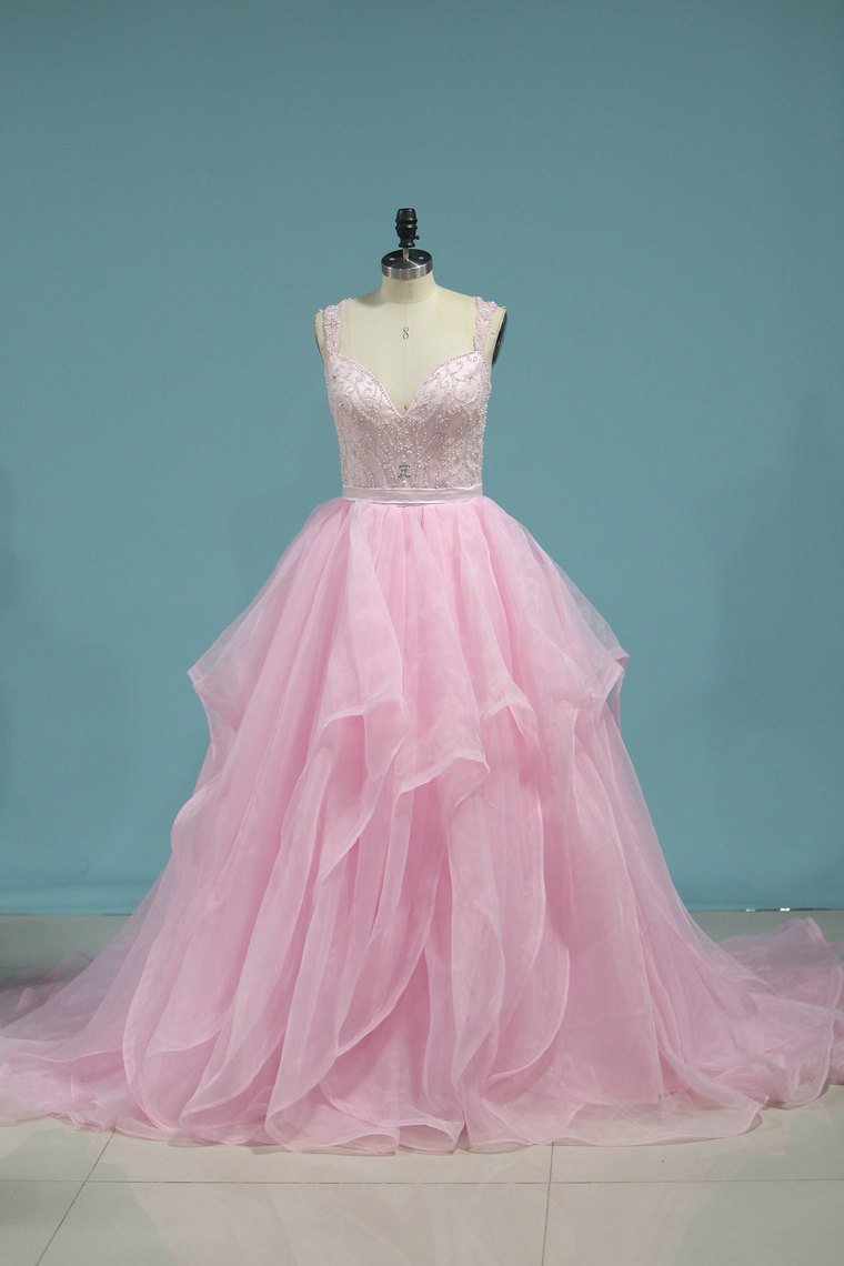 2024 Wedding Dresses Spaghetti Straps A Line Organza With Beading
