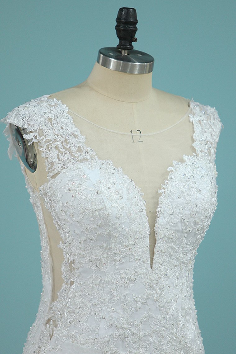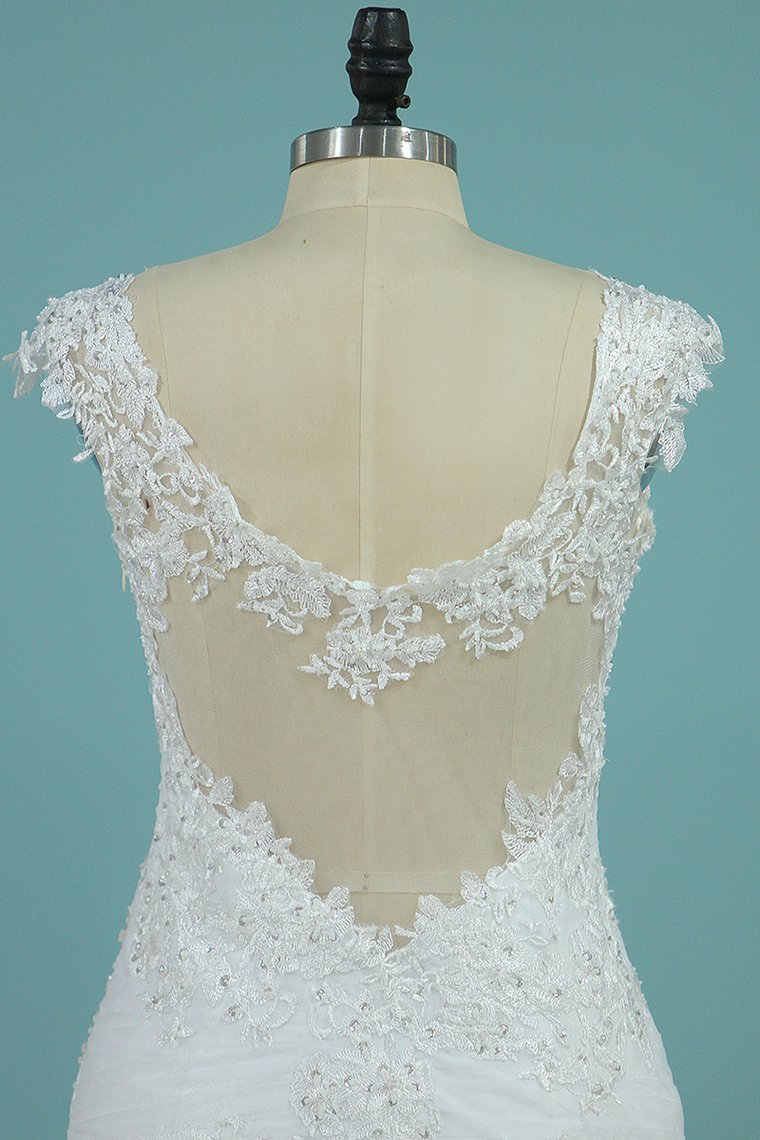 2024 Wedding Dresses Straps Mermaid Tulle With Applique Sweep Train
