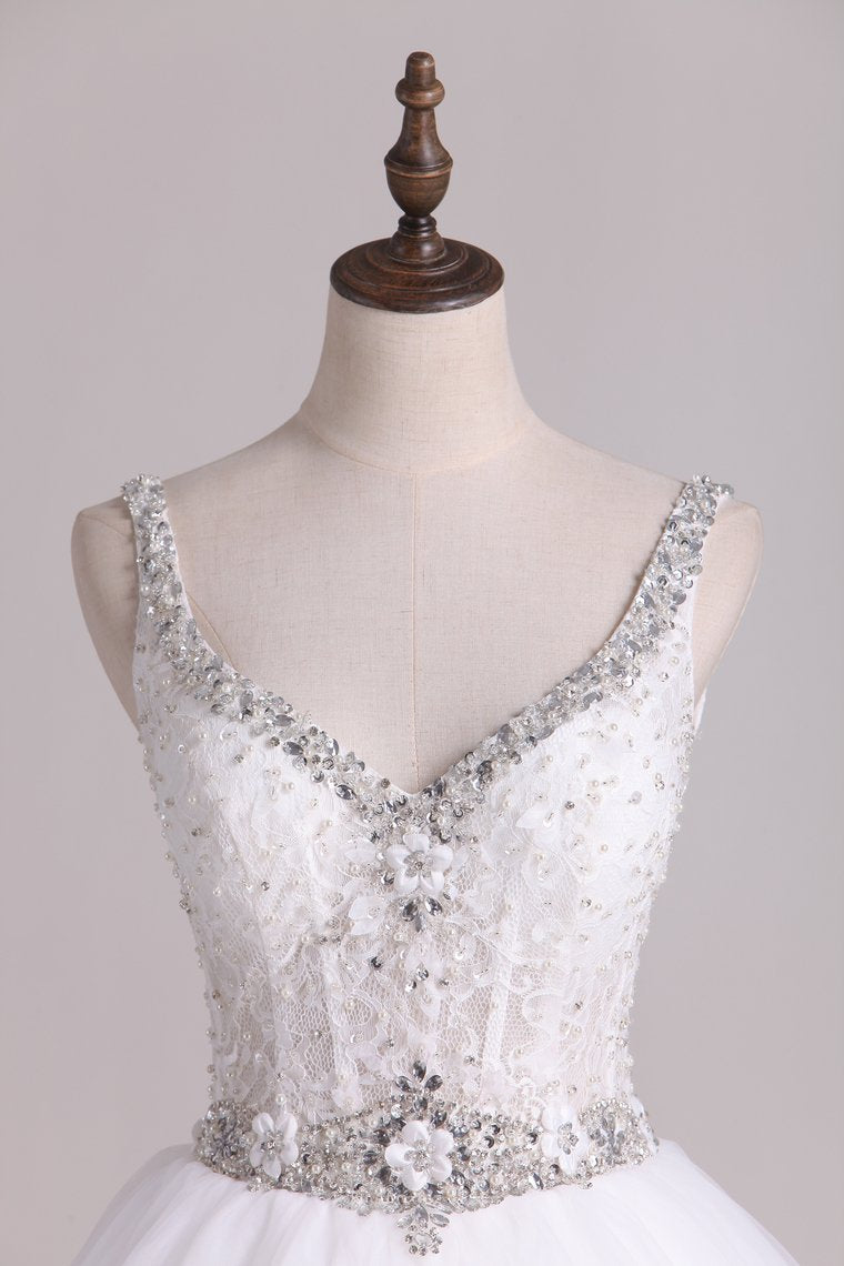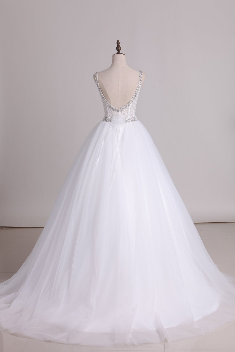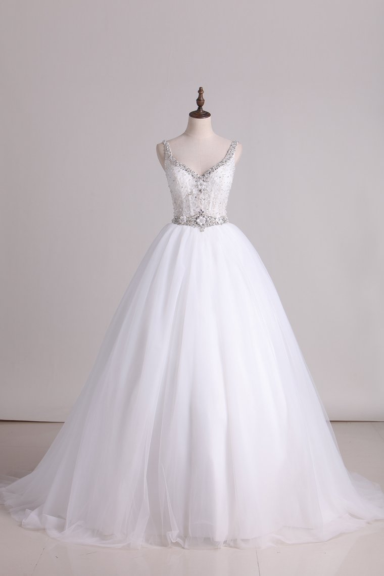 2024 Wedding Dresses Straps With Applique And Beads Tulle A Line