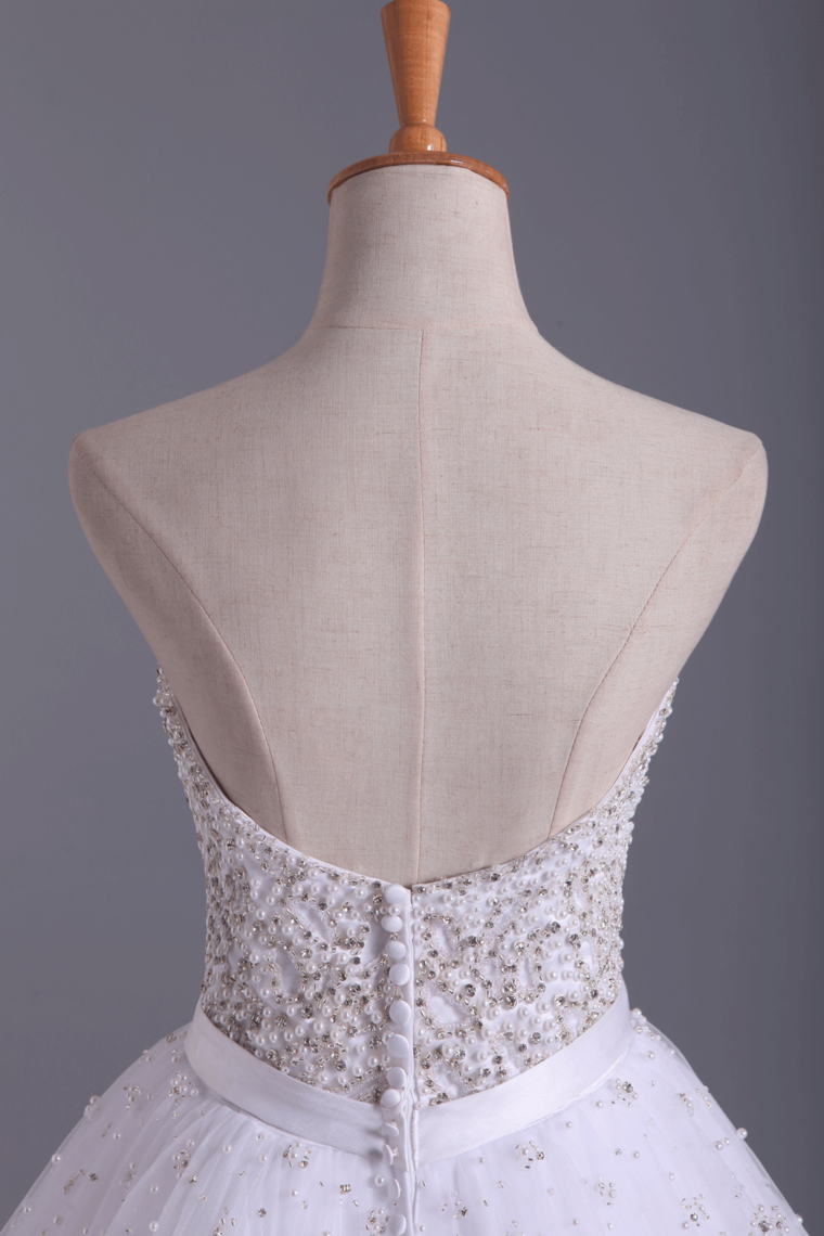 2024 Wedding Dresses Sweetheart Ball Gown Tulle With Beading And Sash