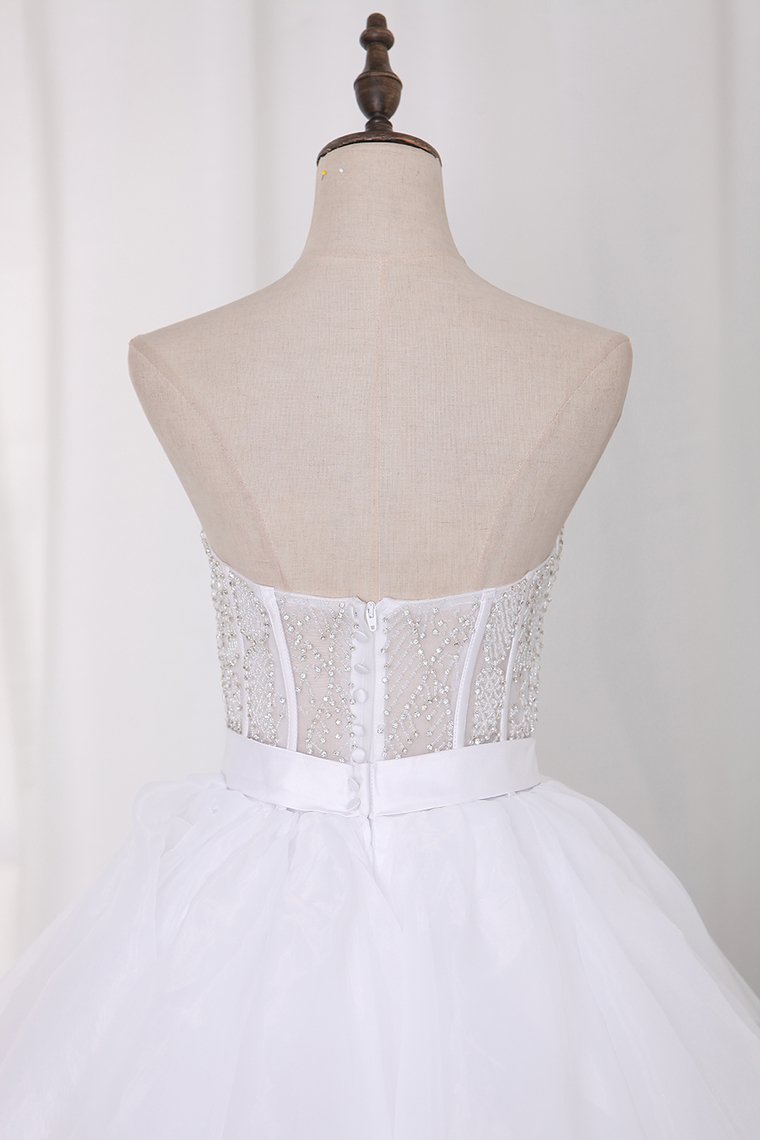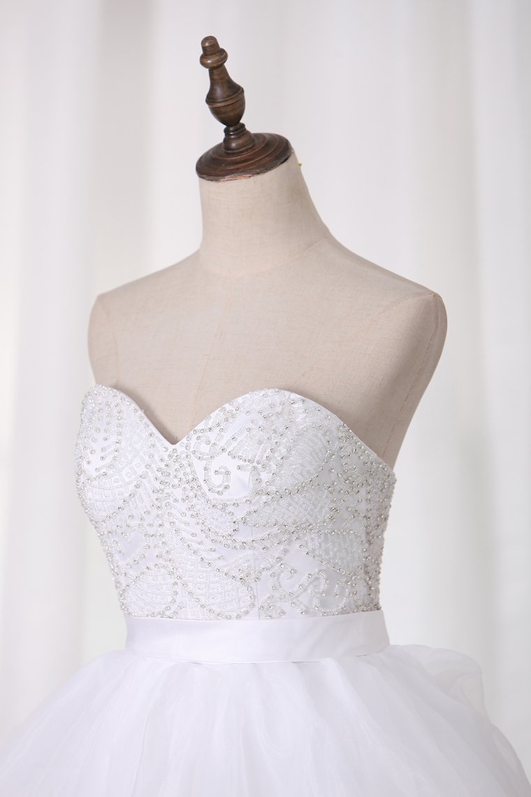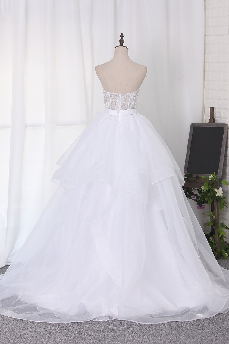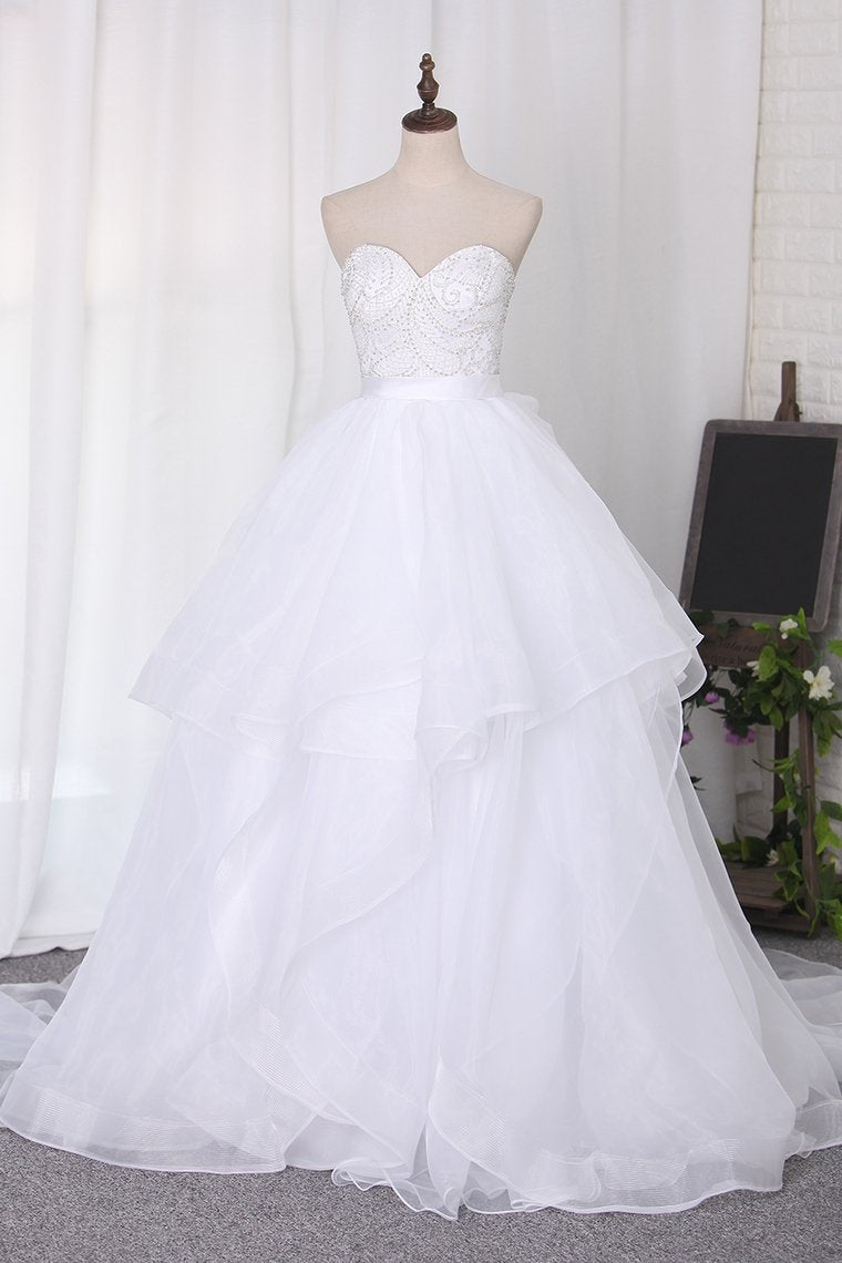 2024 Wedding Dresses Sweetheart Beaded Bodice Court Train Organza