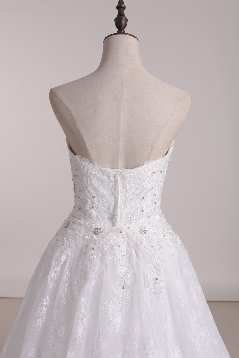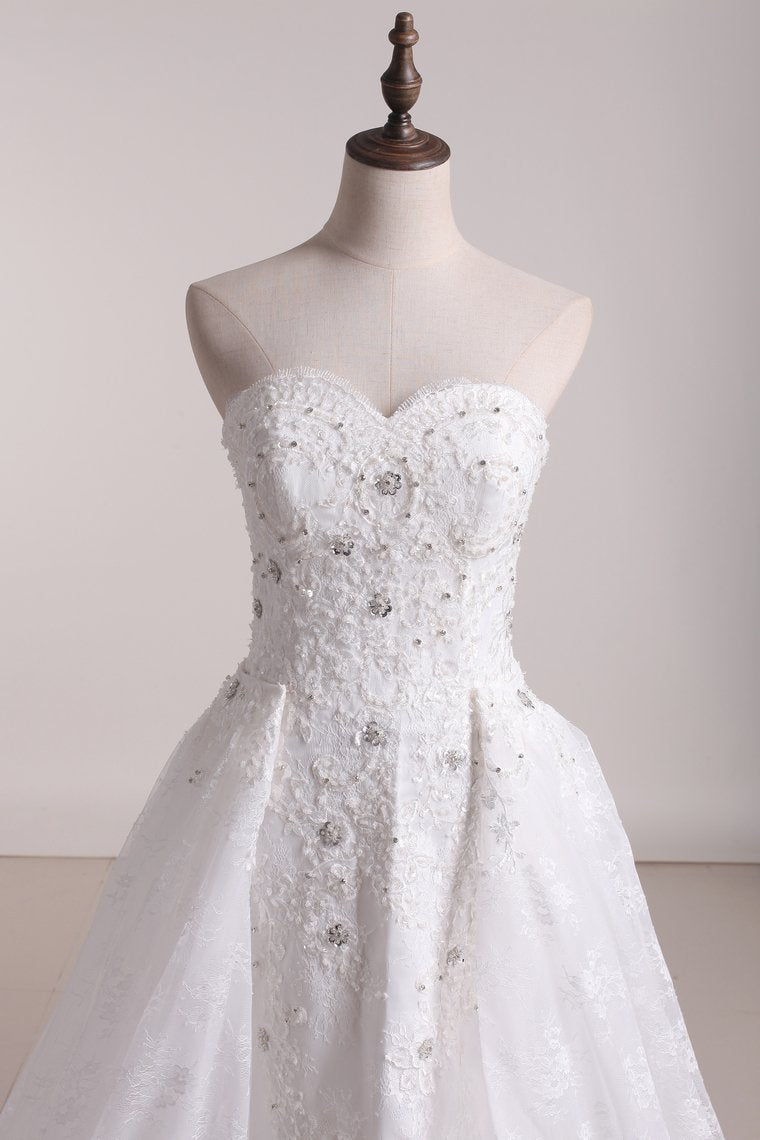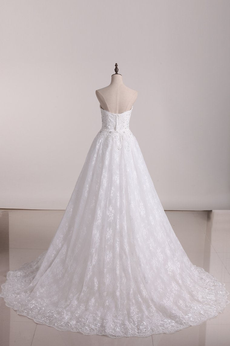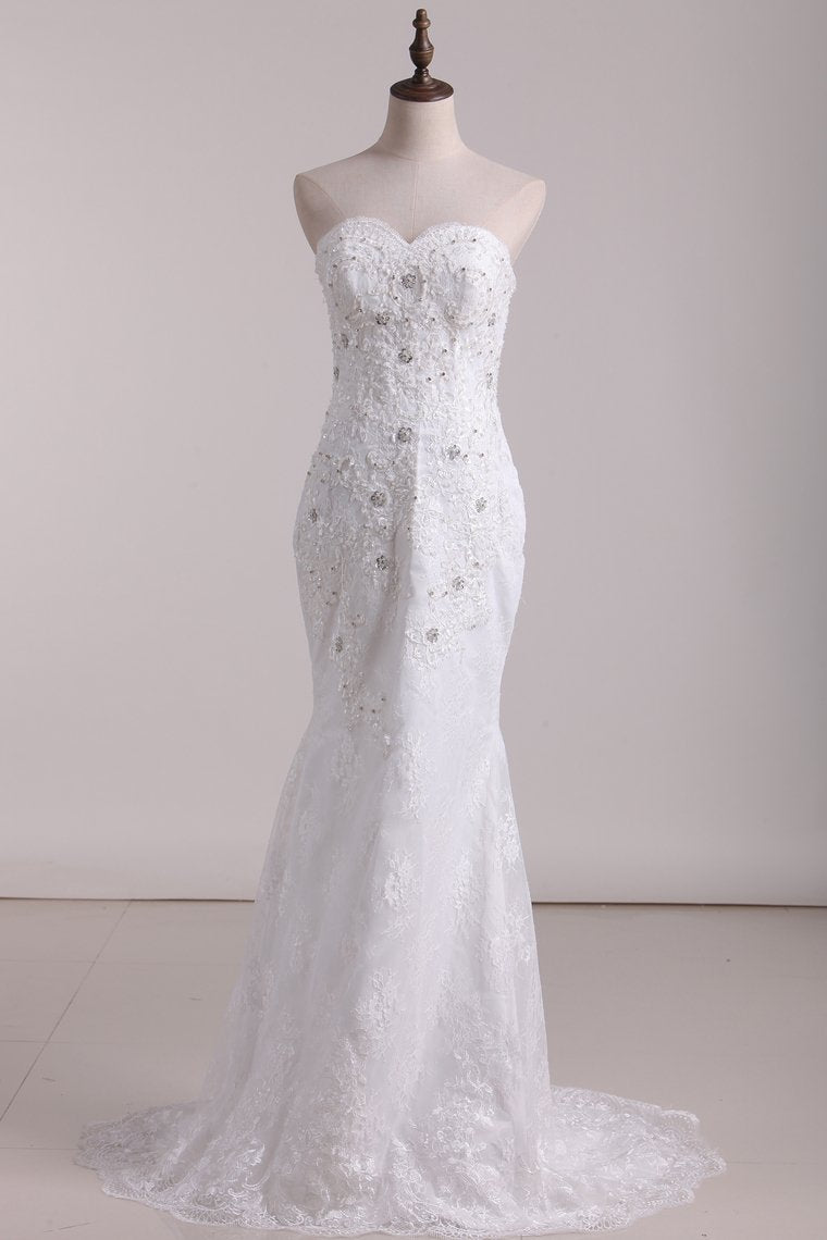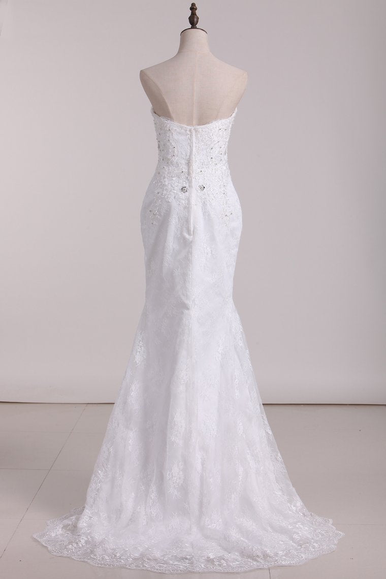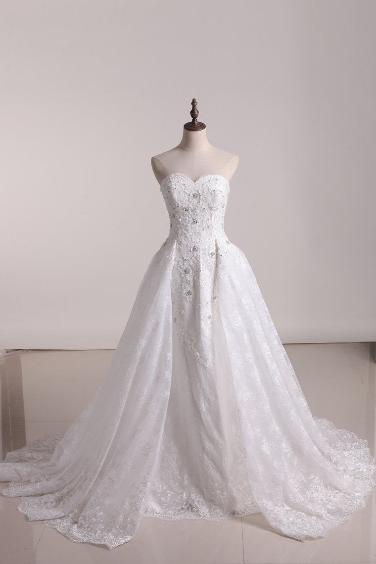 2024 Wedding Dresses Sweetheart Lace With Applique And Beads Mermaid Court Train Detachable