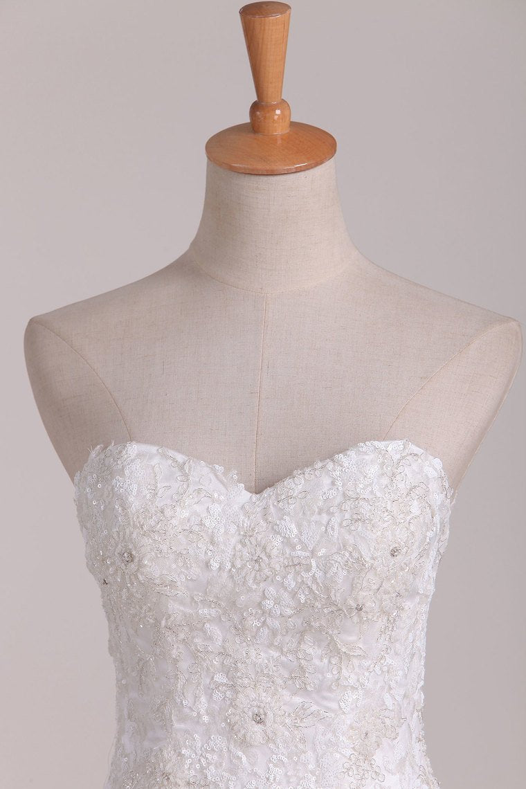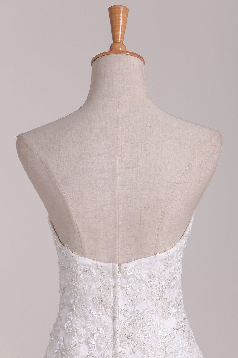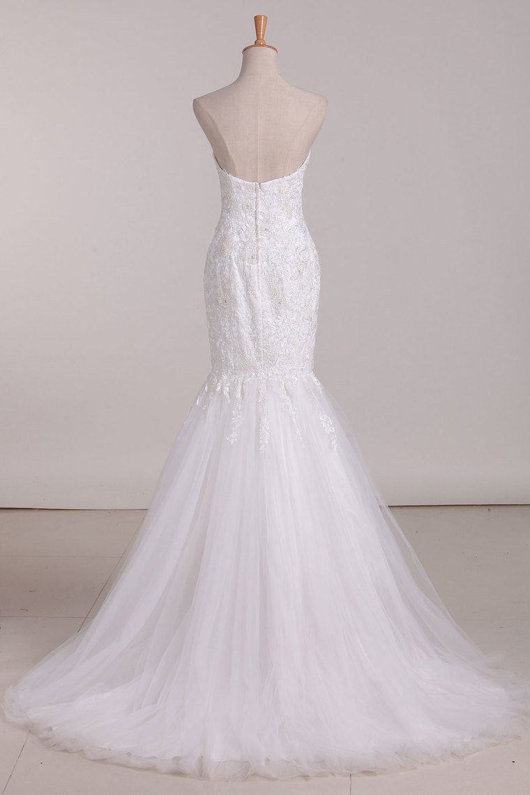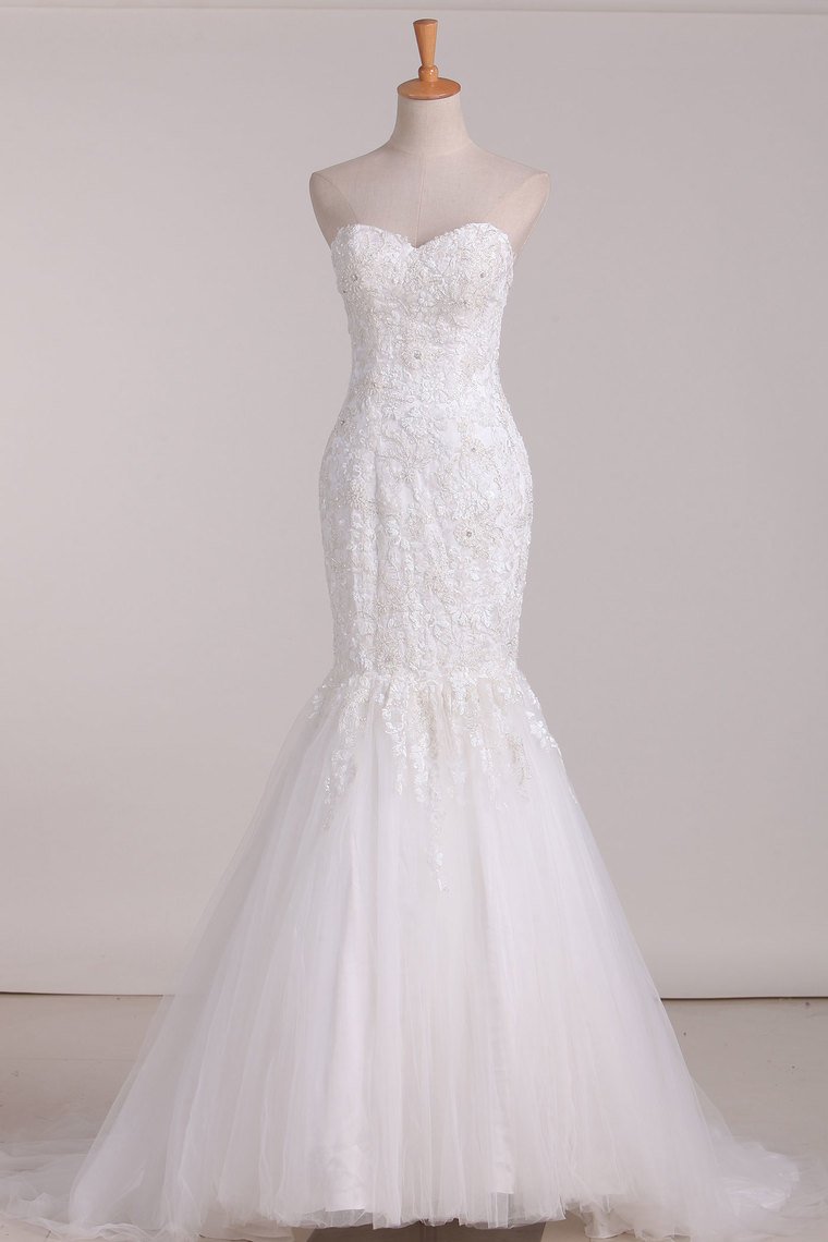 2024 Wedding Dresses Sweetheart Mermaid Tulle With Applique Sweep Train