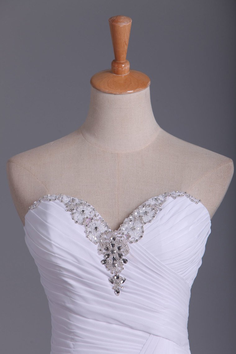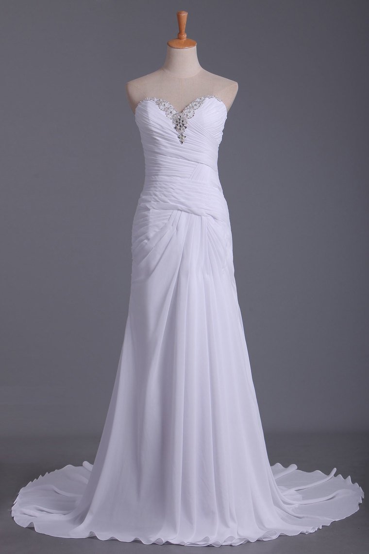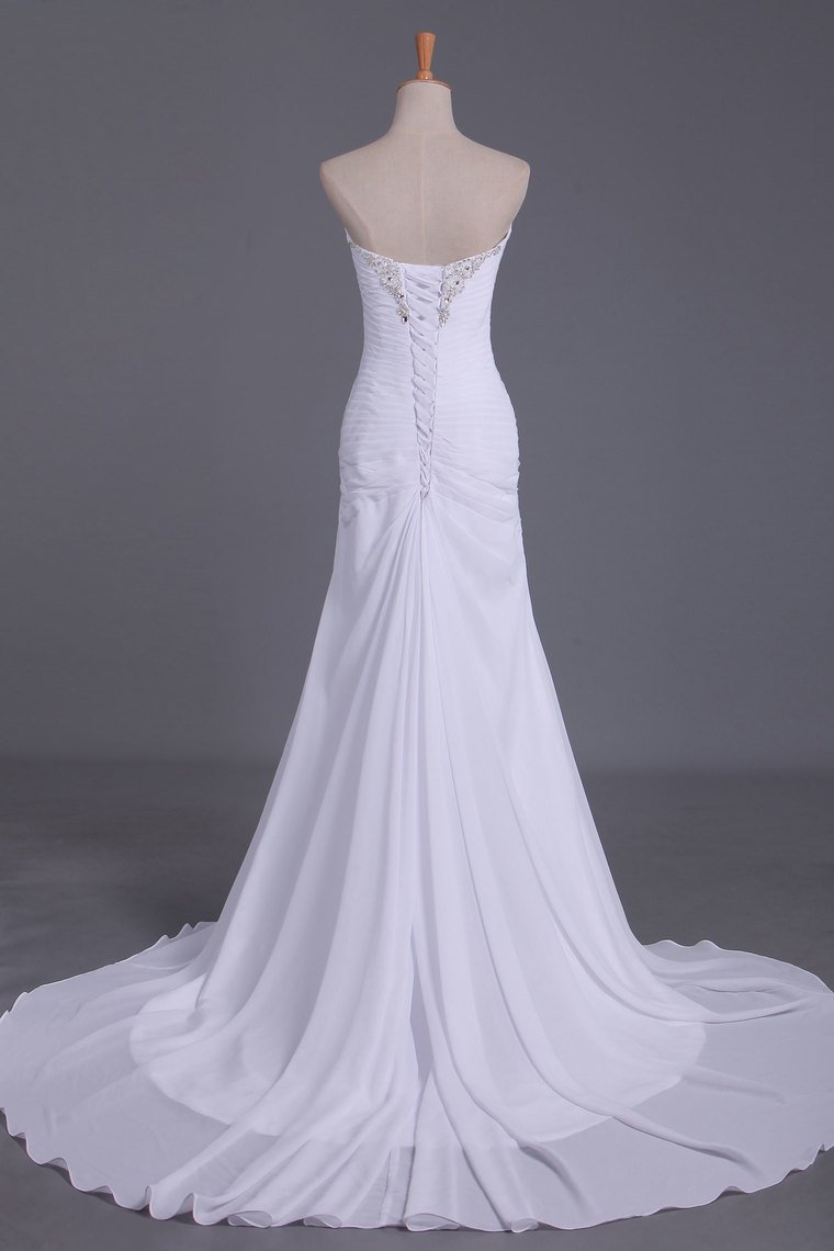 2024 Wedding Dresses Sweetheart Sheath With Beads And Ruffles Chiffon Court Train