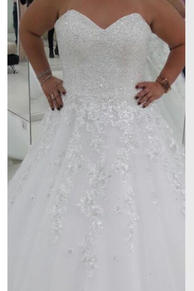 2024 Wedding Dresses Sweetheart Tulle A Line With Applique And Beads Lace Up