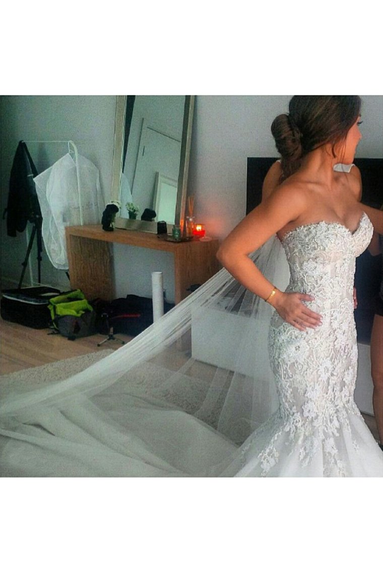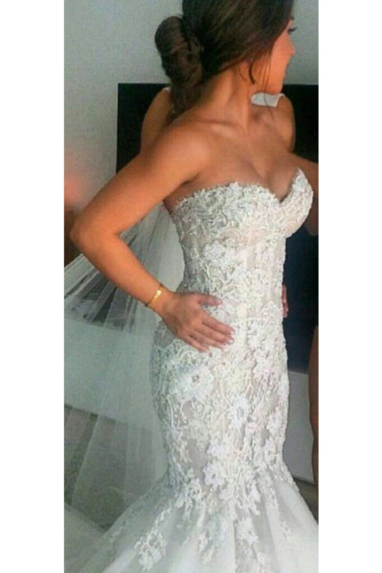 2024 Wedding Dresses Sweetheart Tulle With Applique Court Train Mermaid