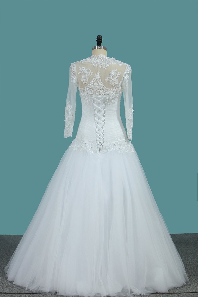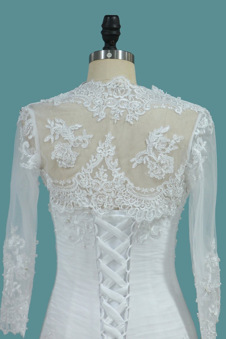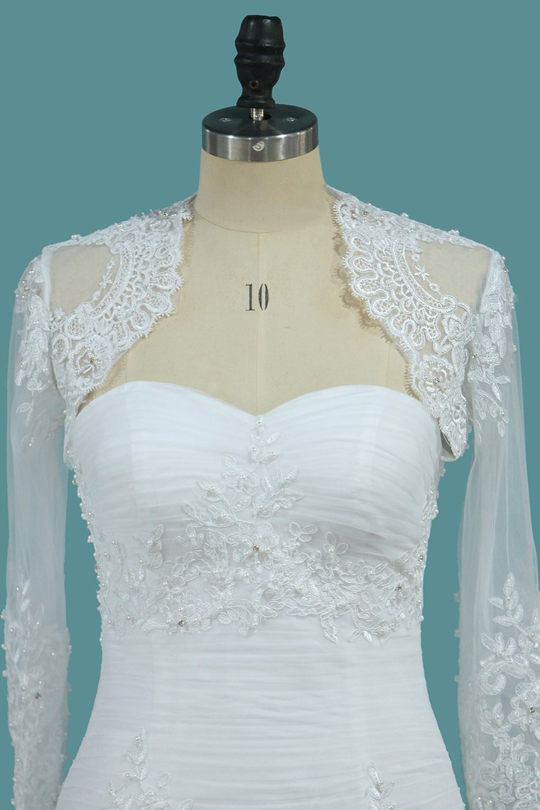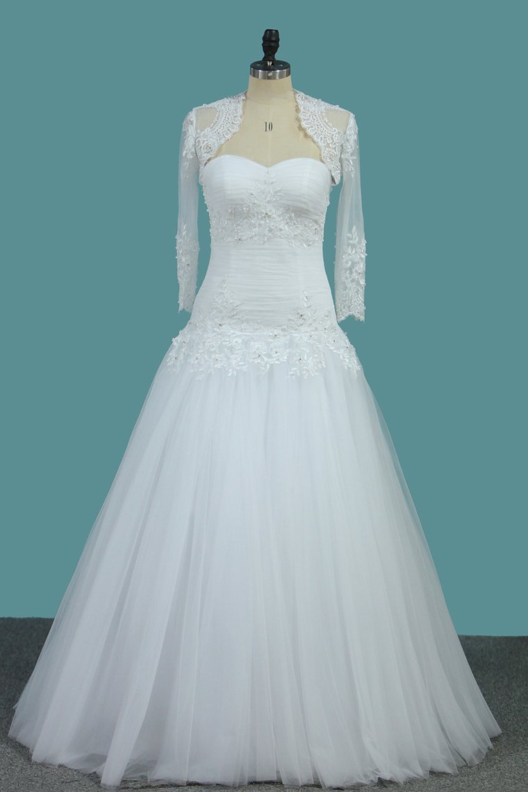 2024 Wedding Dresses Sweetheart With Jacket Tulle With Beads And Ruffles