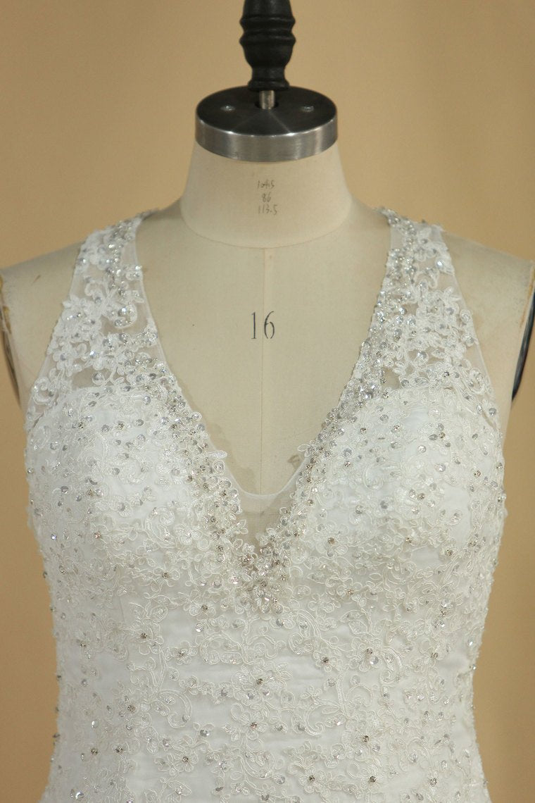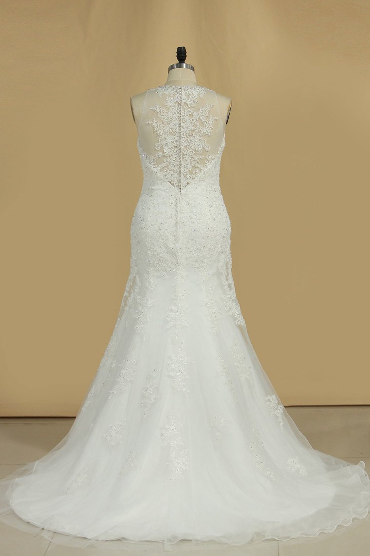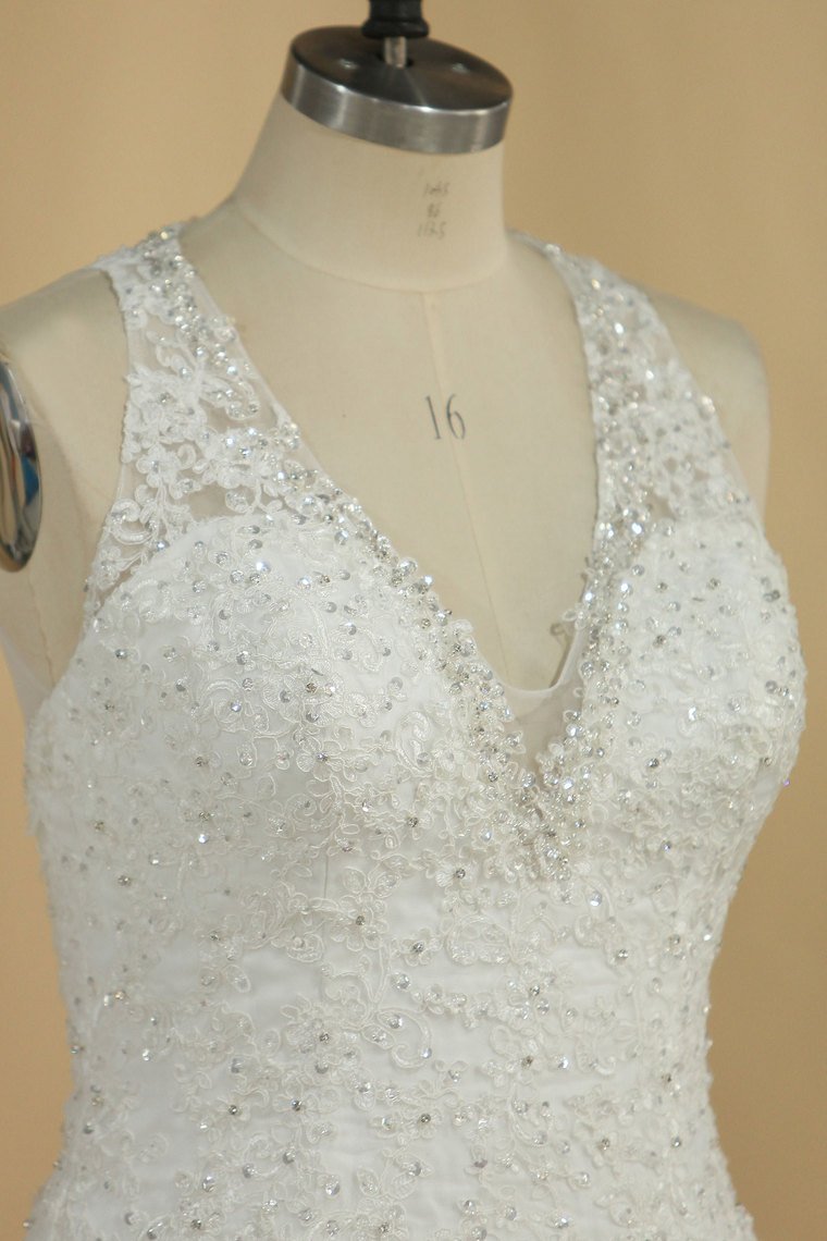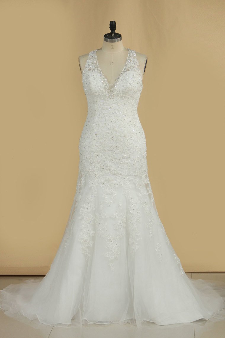 2024 Wedding Dresses V Neck Organza With Applique And Beads Mermaid