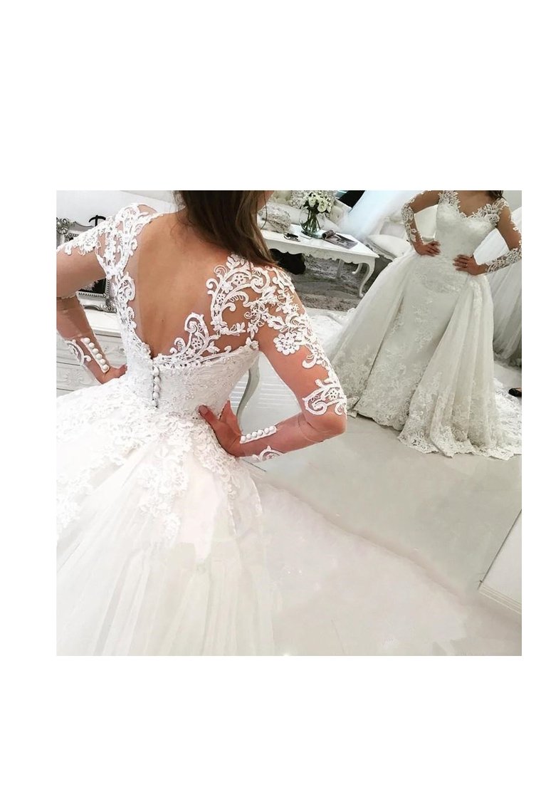 2024 Wedding Dresses V Neck Sheath With Applique Long Sleeves Detachable Train