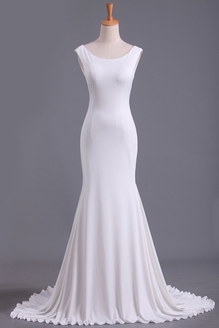 2024 White Scoop Mermaid/Trumpet Wedding Dresses Spandex Court Train