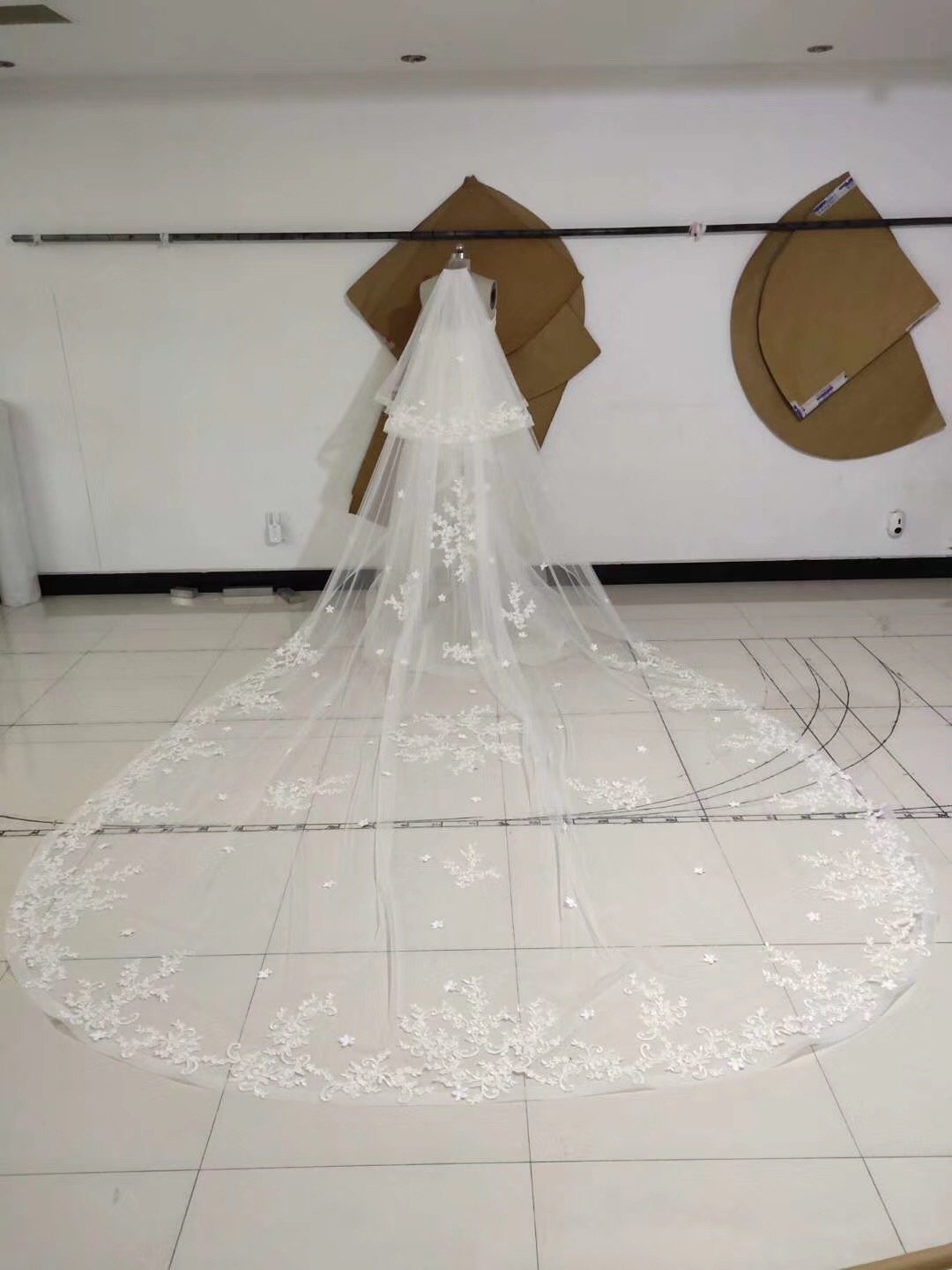 3M Long Embroidered Lace Appliques Tulle Cathedral Veil for Wedding, Wedding Veils SRS14988