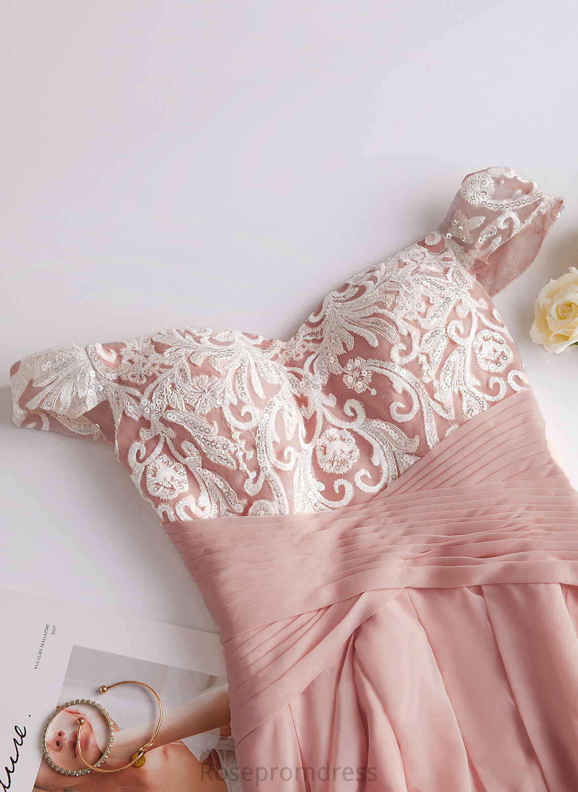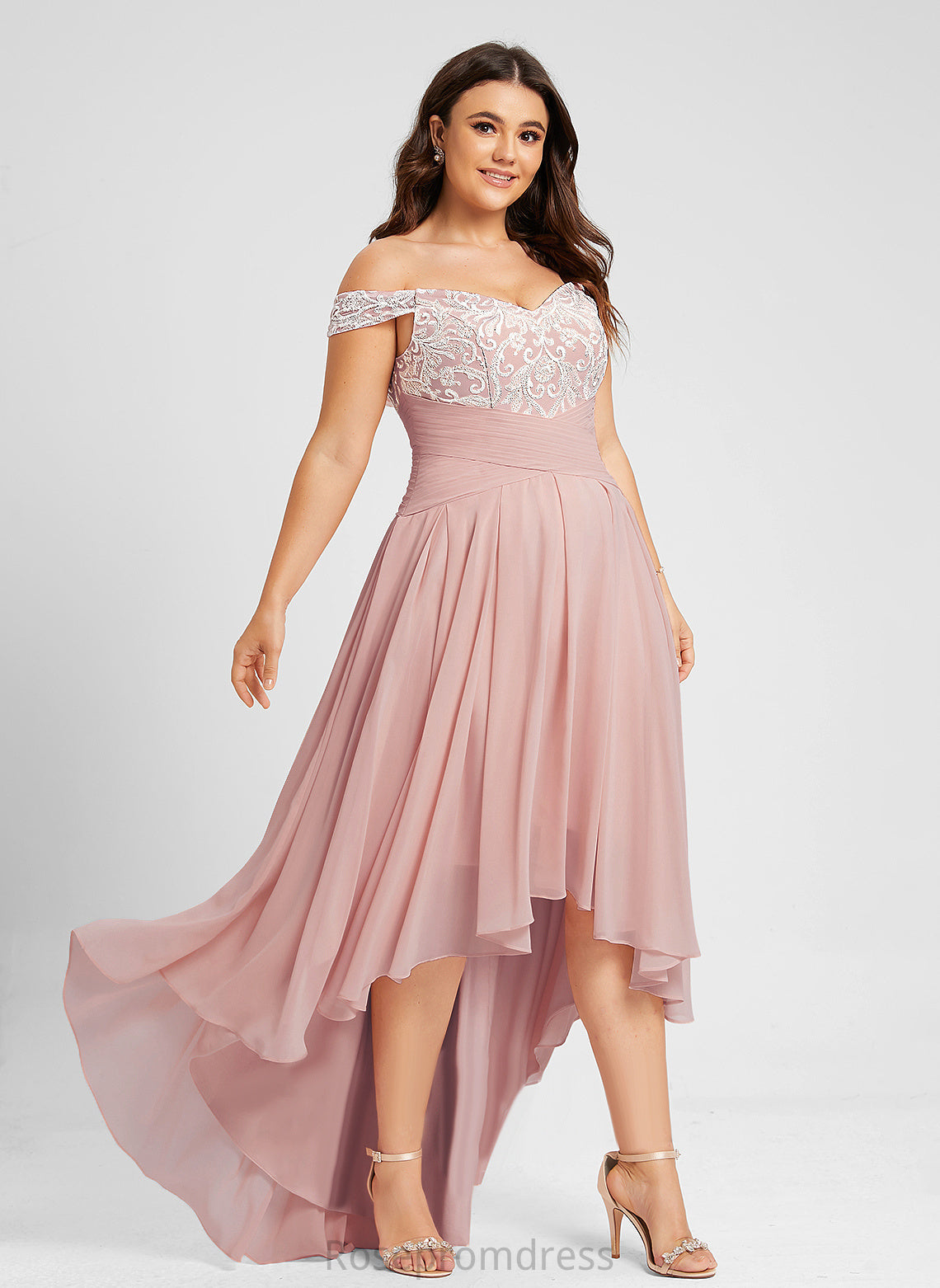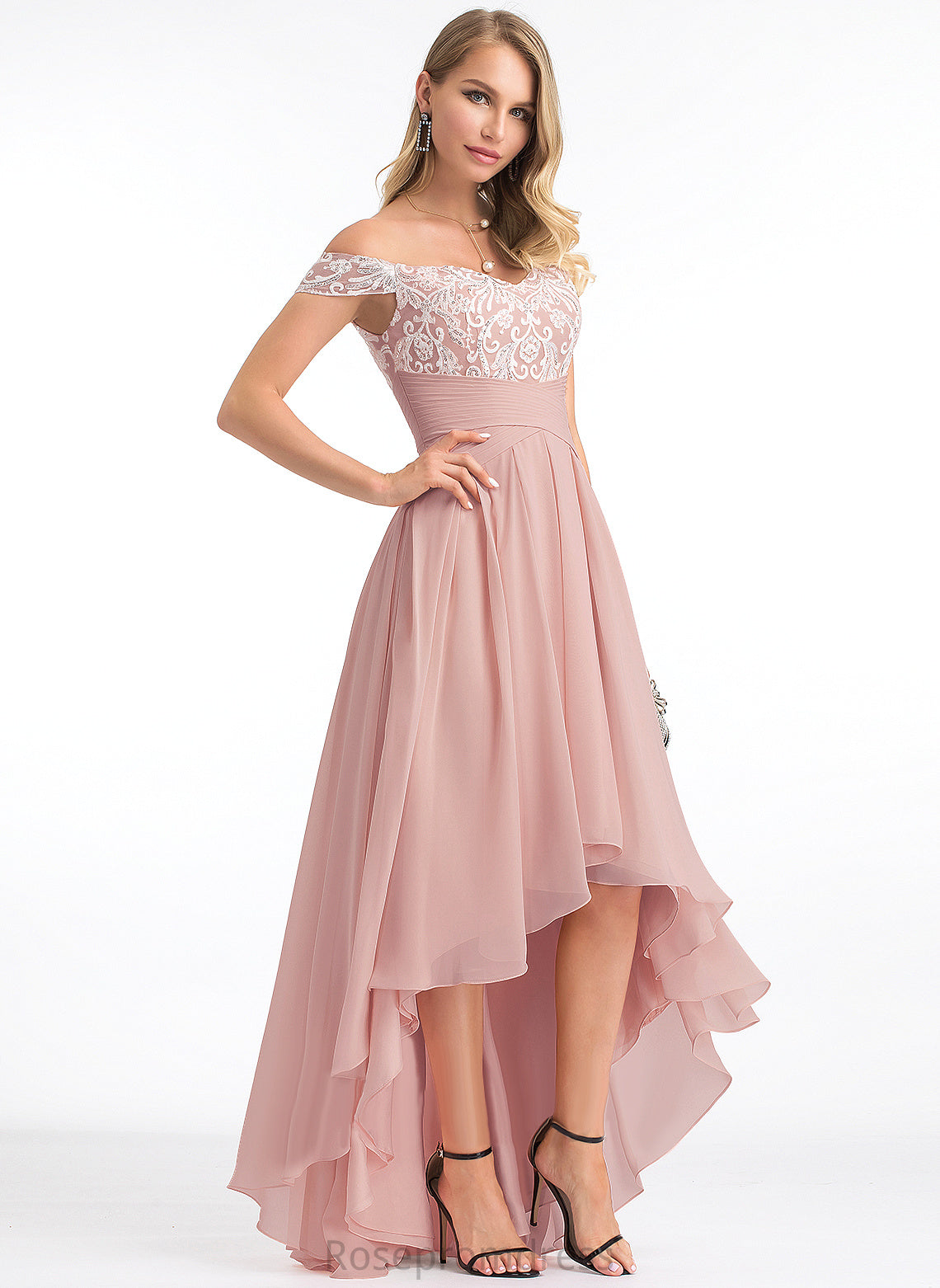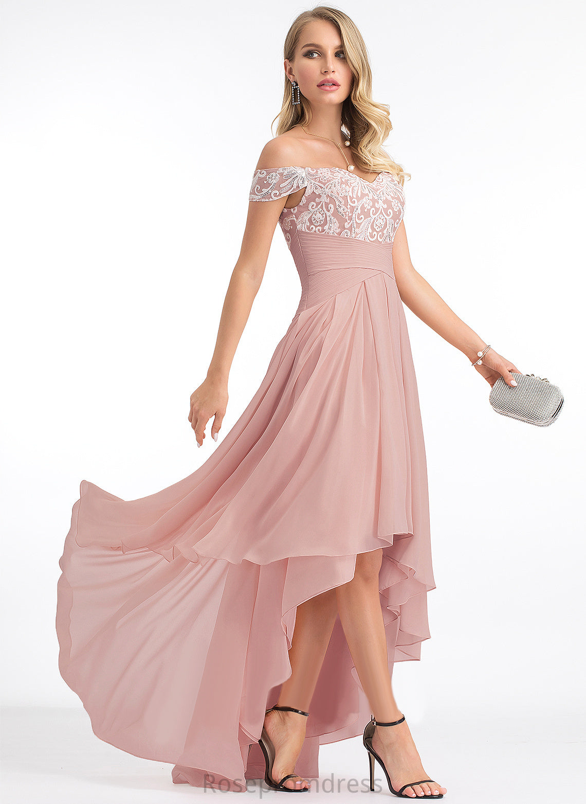 A-Line Asymmetrical Off-the-Shoulder Wedding Dresses Lace Dress Chiffon Mila With Pleated Wedding