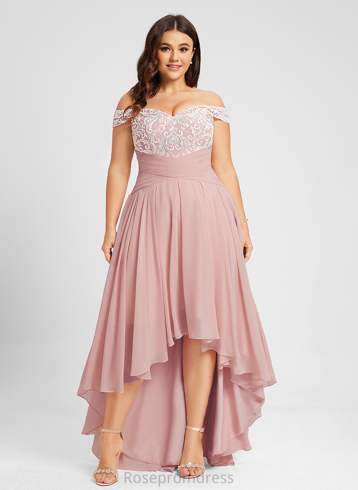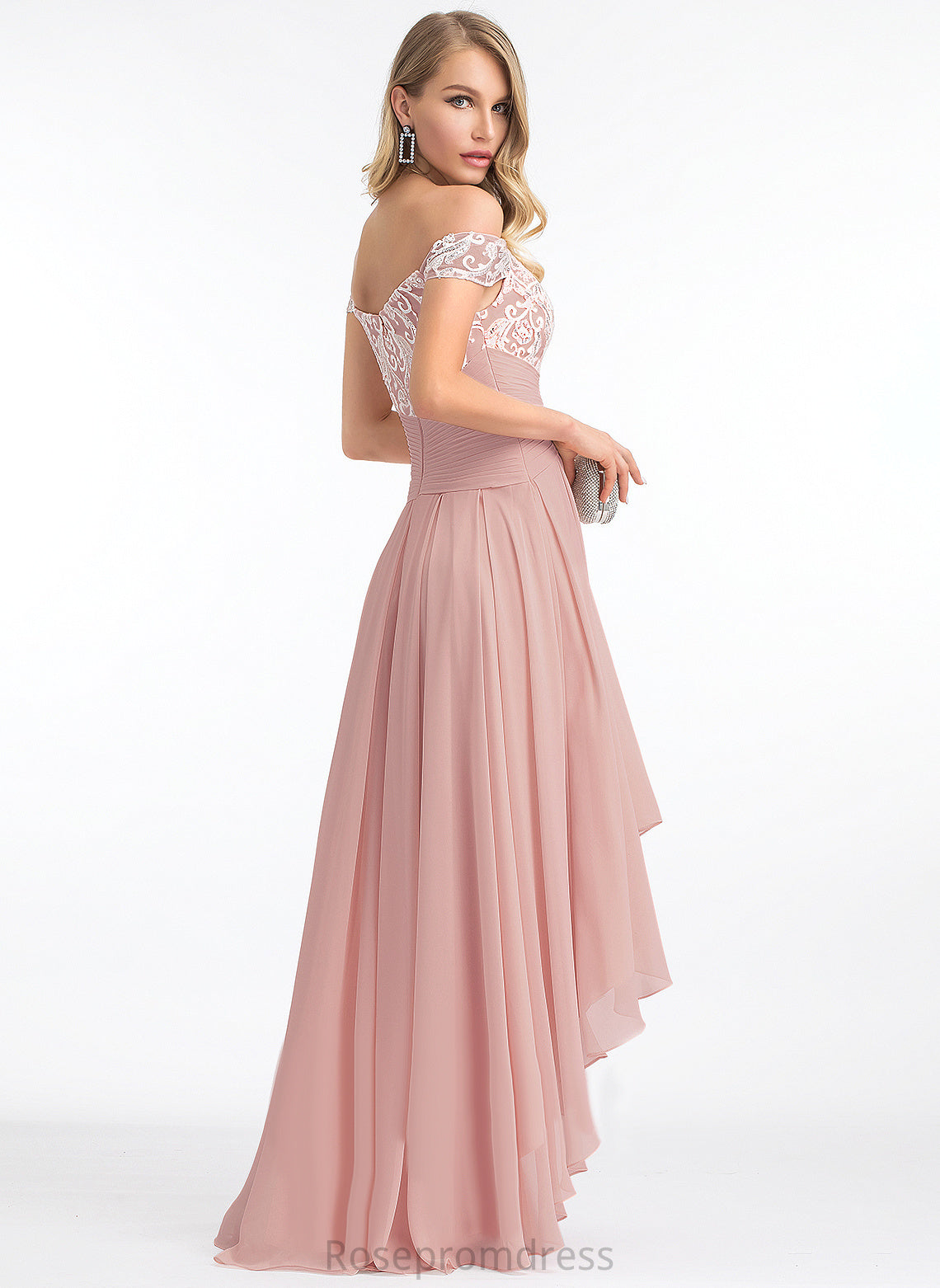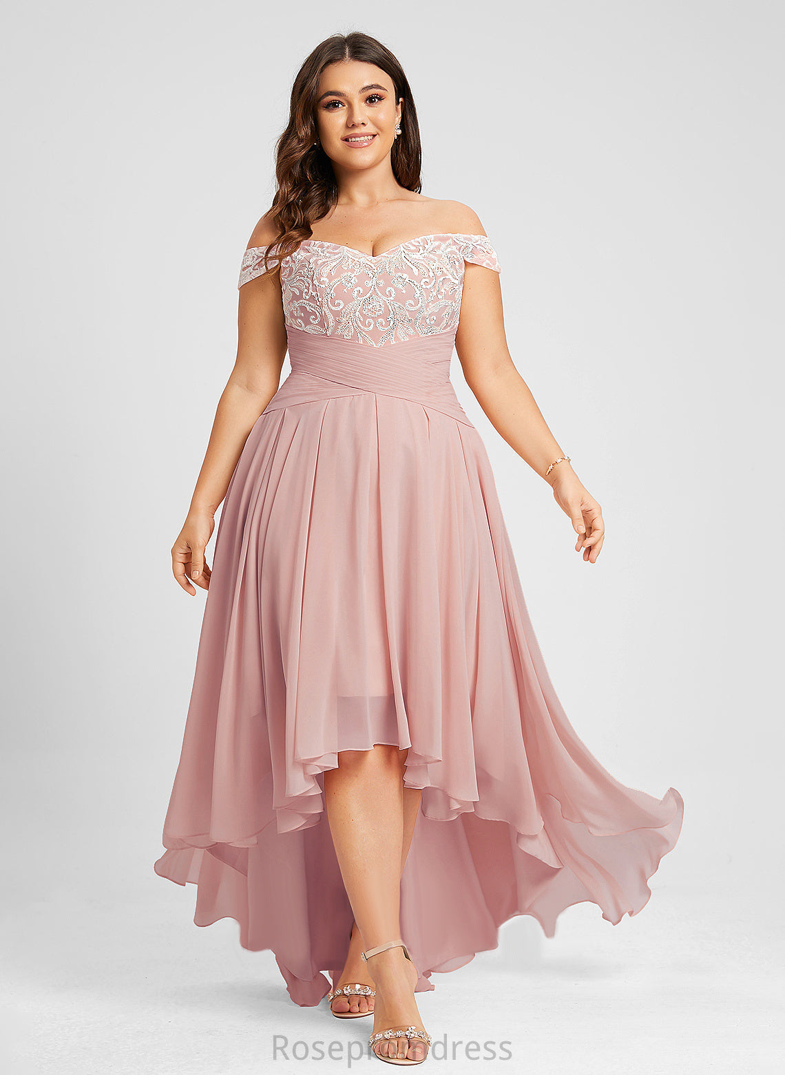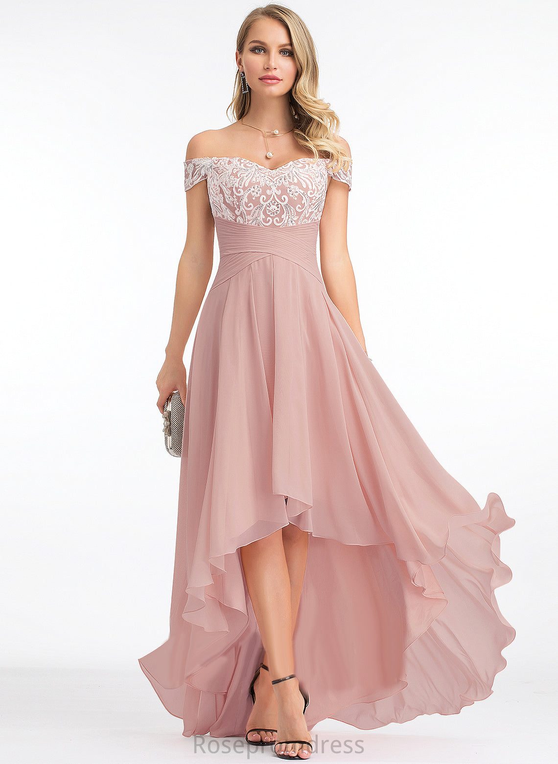 A-Line Asymmetrical Off-the-Shoulder Wedding Dresses Lace Dress Chiffon Mila With Pleated Wedding