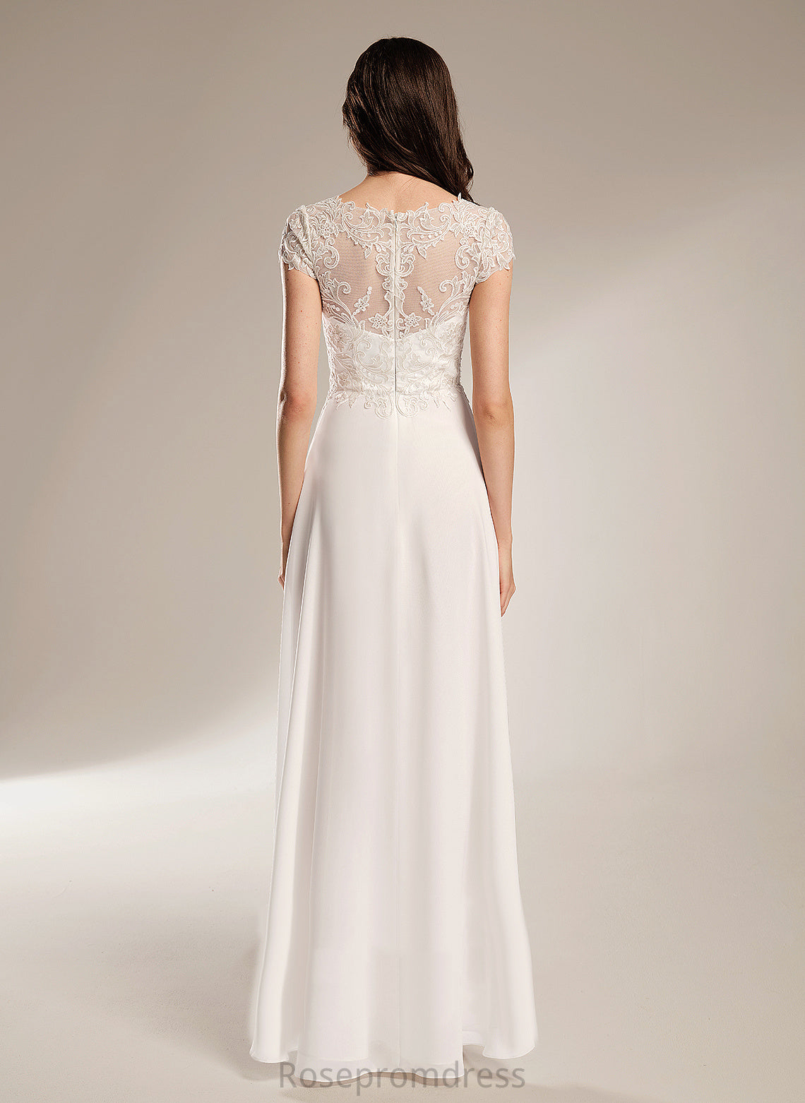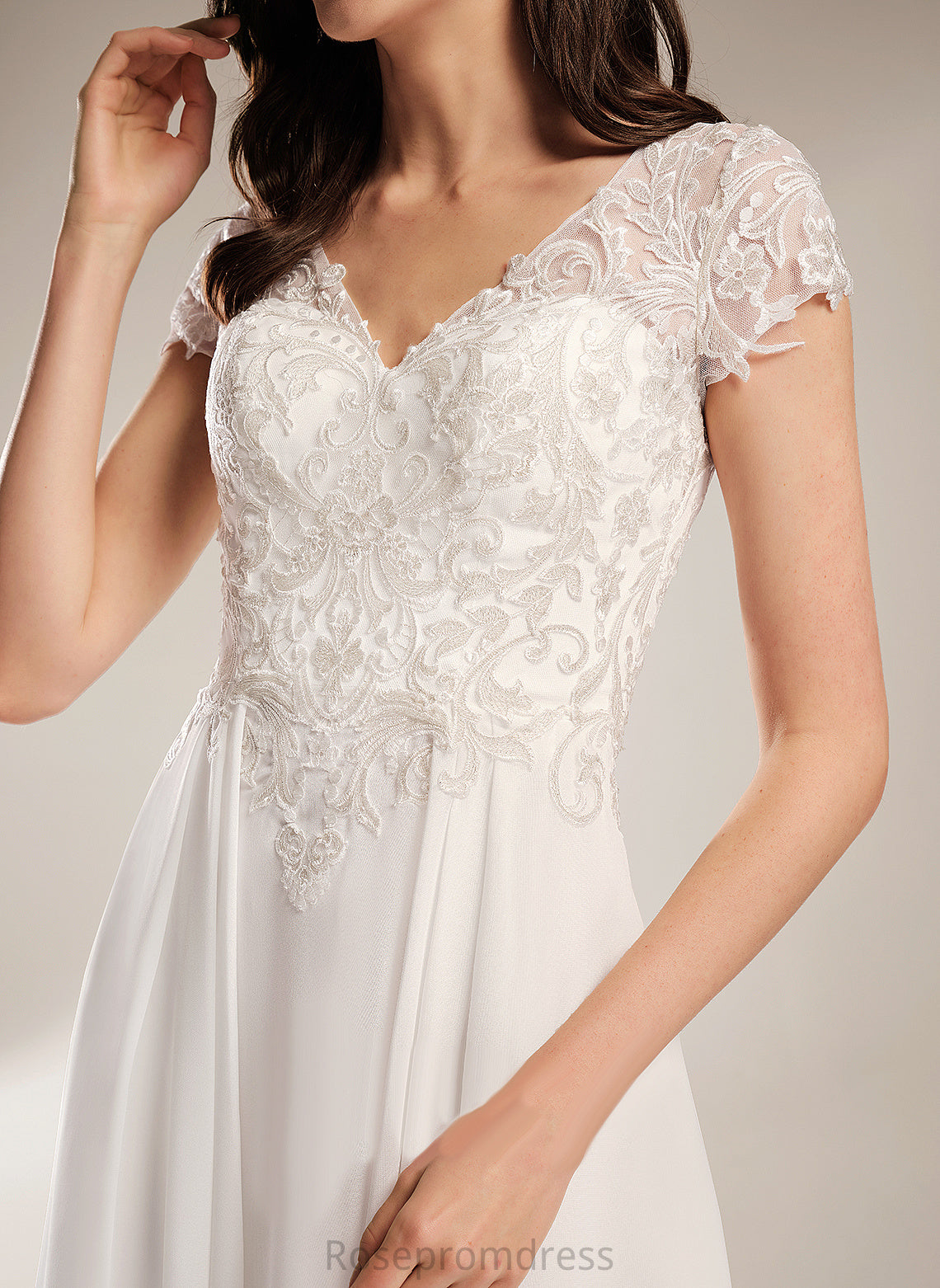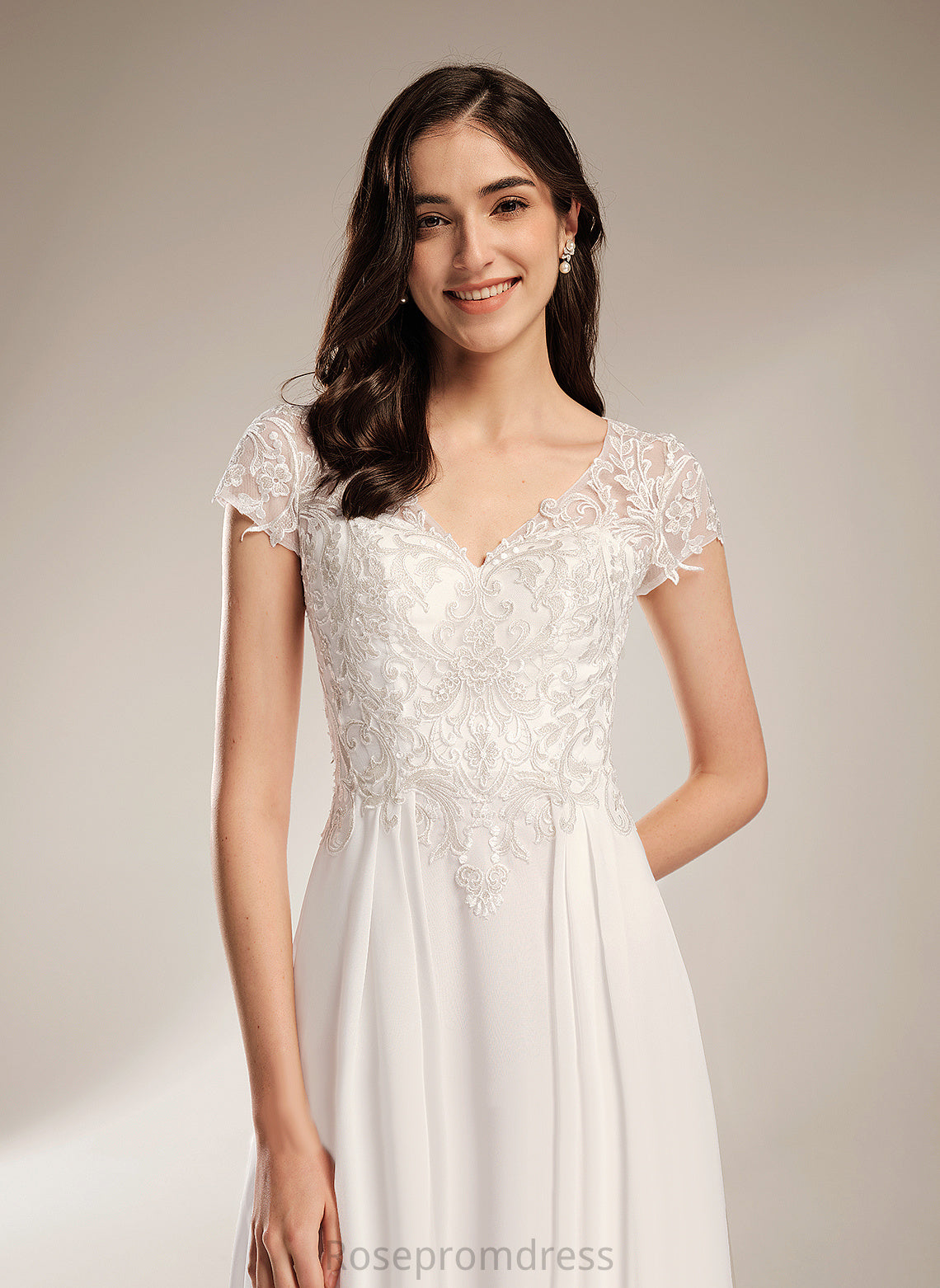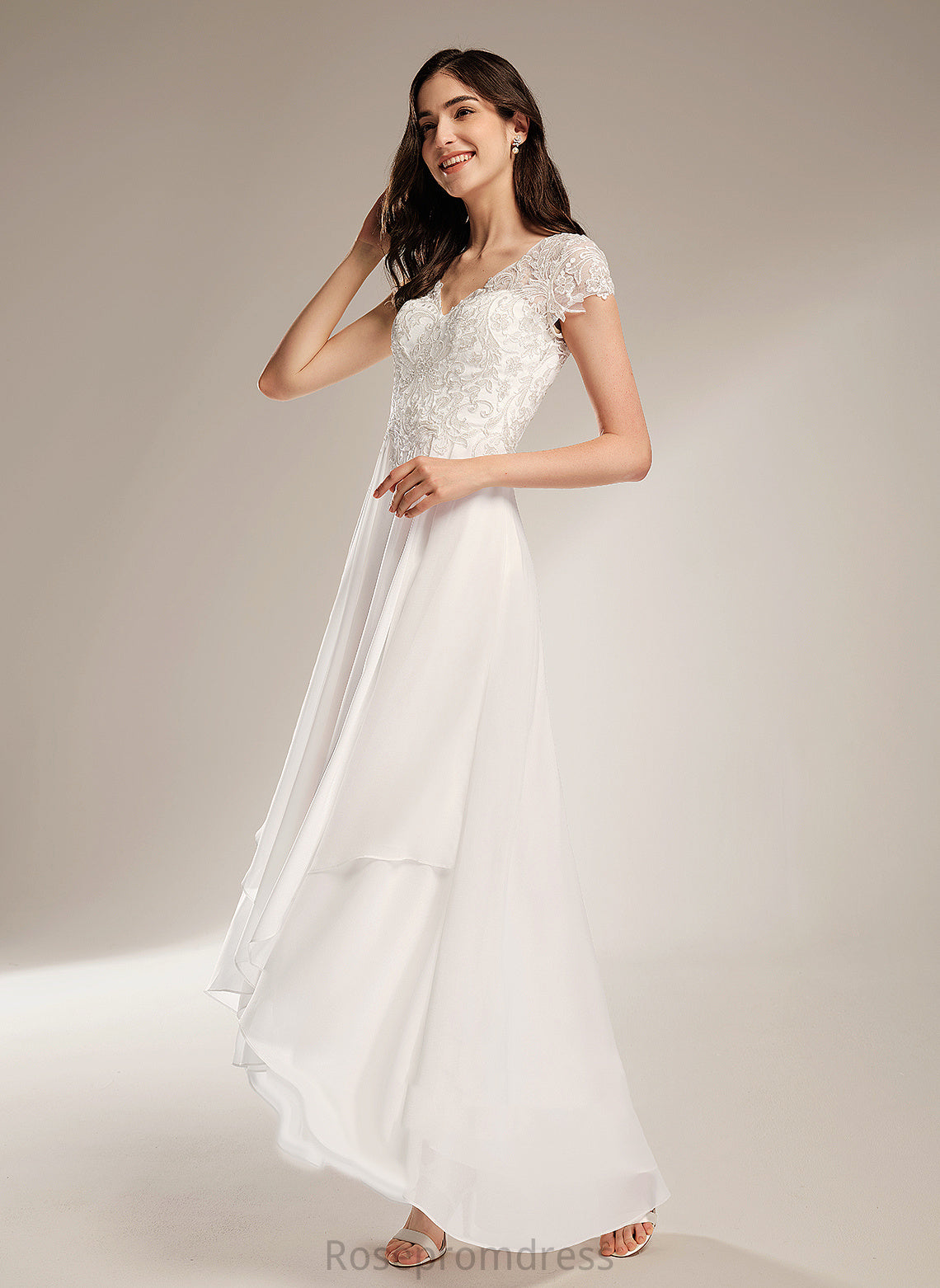A-Line Asymmetrical Wedding Lace Chiffon Dalia With V-neck Wedding Dresses Dress