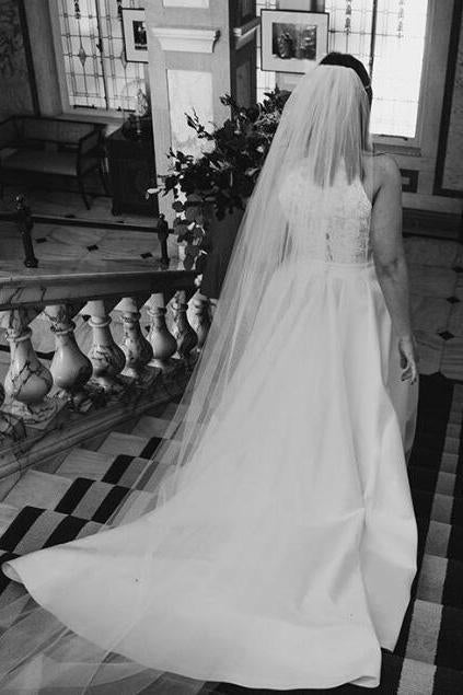 A Line Halter Ivory Satin Sleeveless Wedding Dresses Long Lace Prom Dresses RS431
