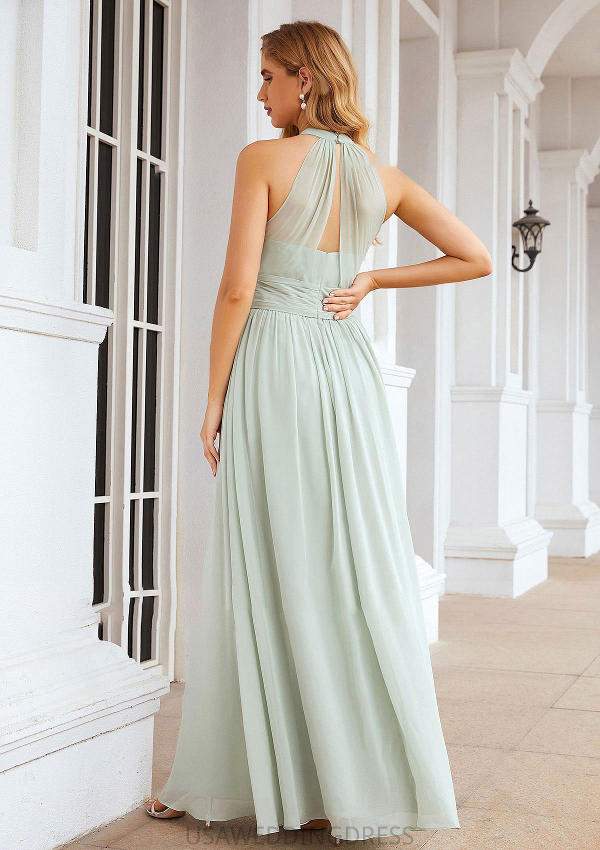 A-line High-Neck Sleeveless Long/Floor-Length Chiffon Bridesmaid Dresses With Pleated Baylee DSP0025326