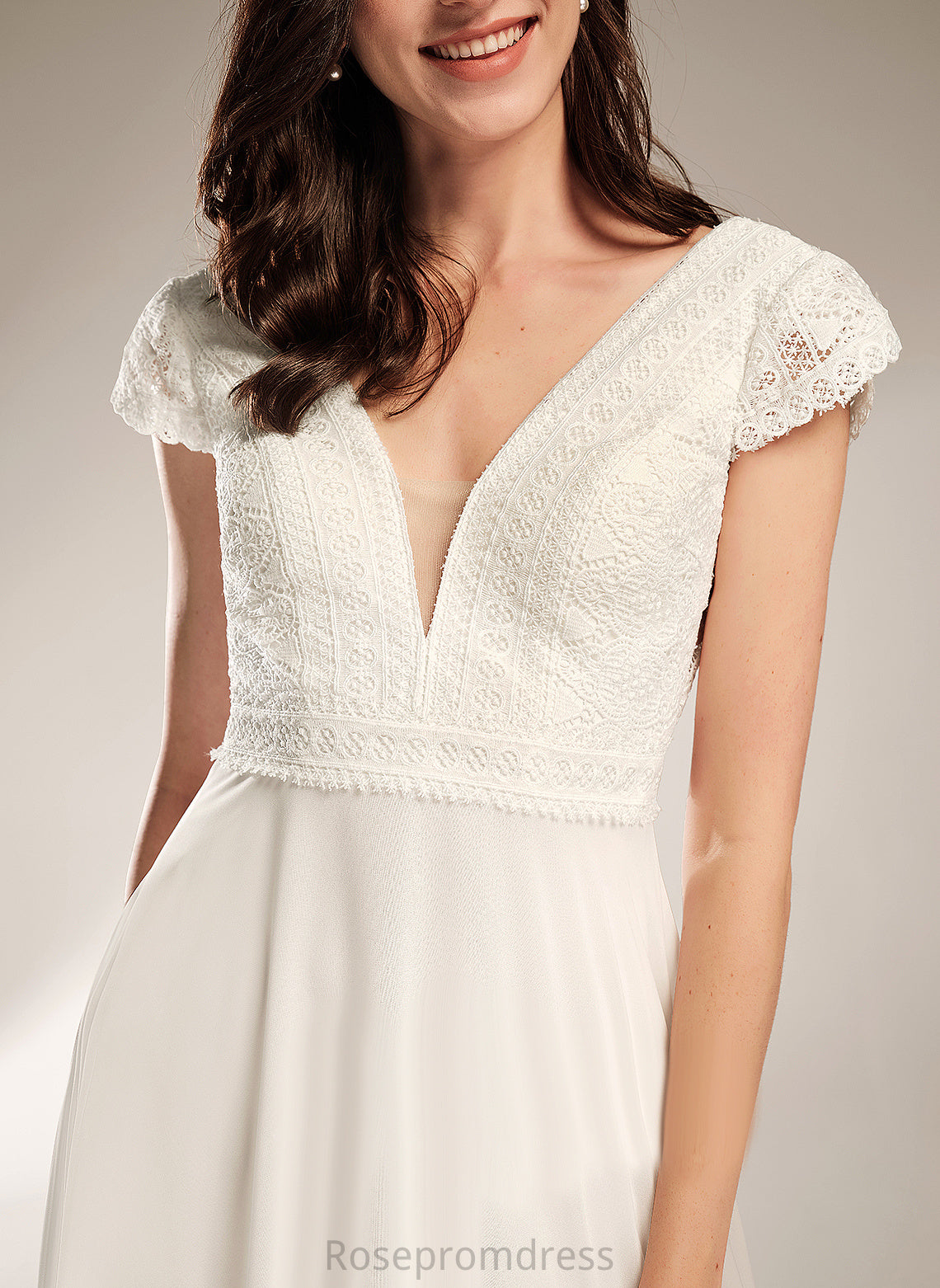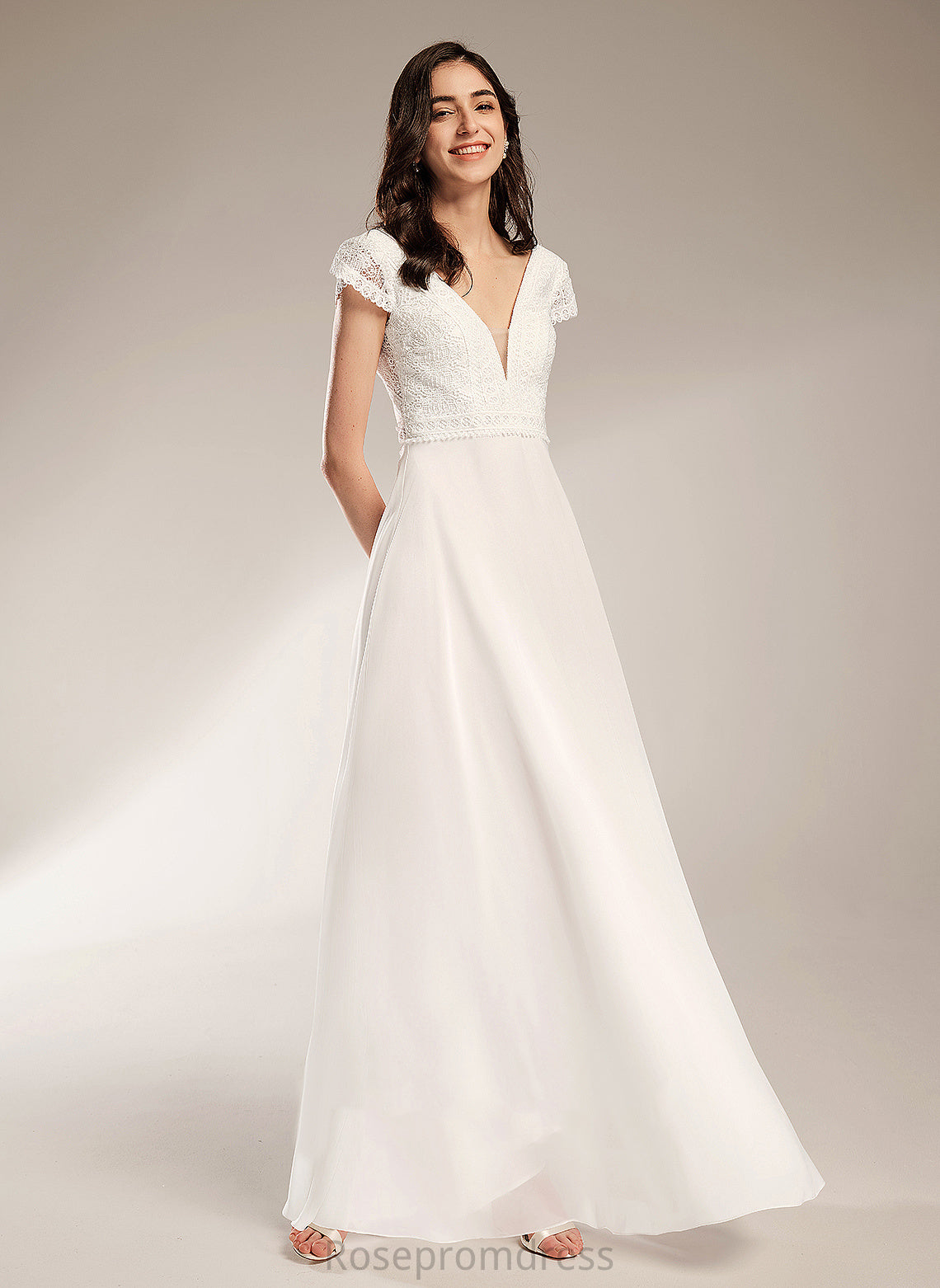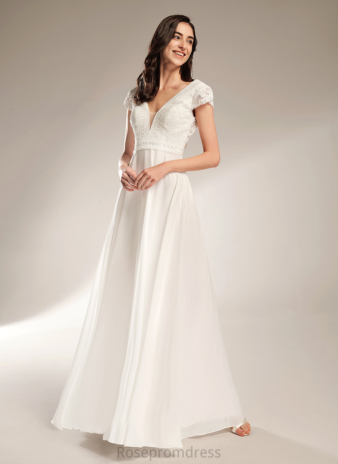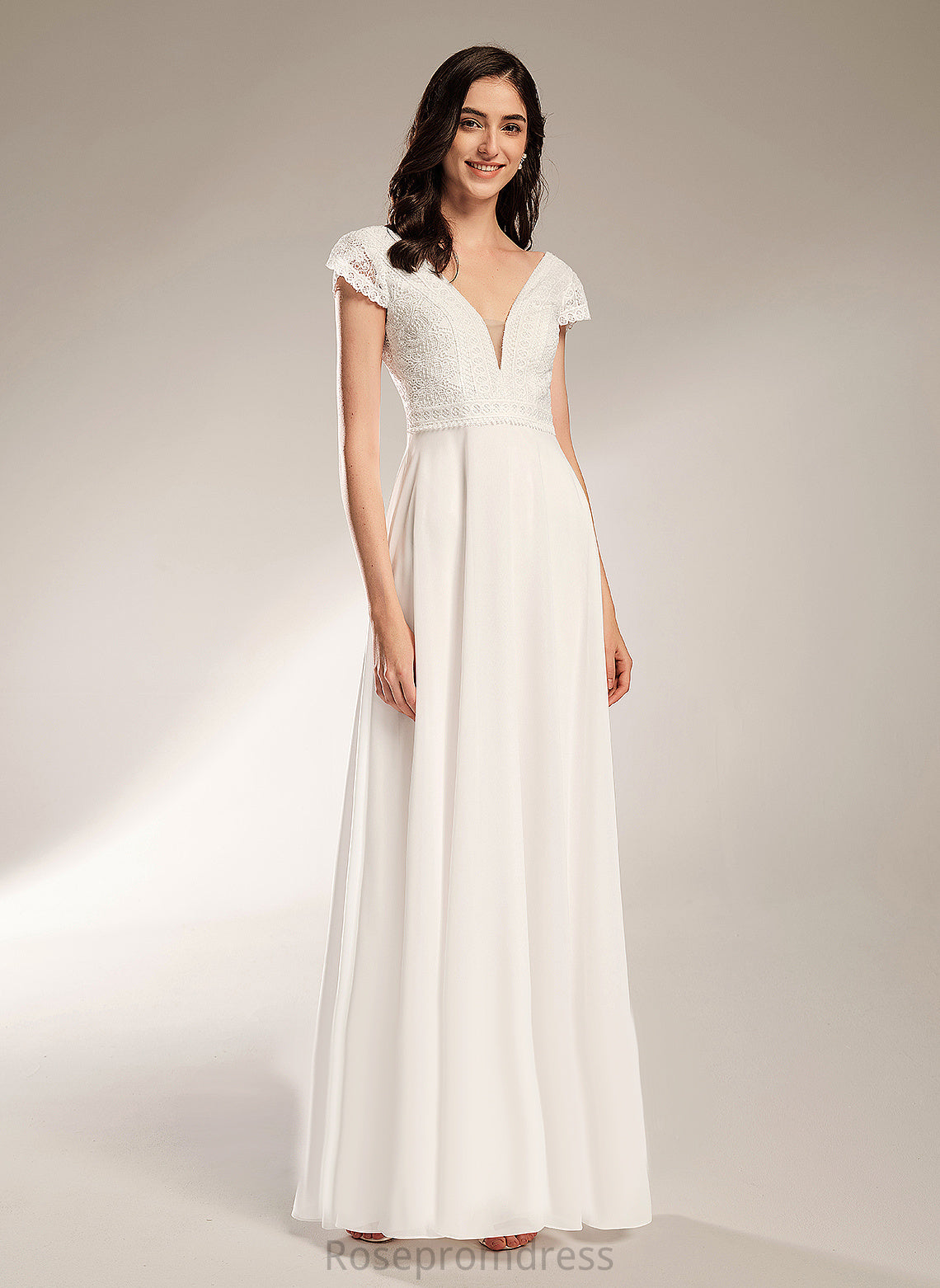 A-Line Lace Wedding Dresses Wedding Abbey Chiffon Dress V-neck Floor-Length