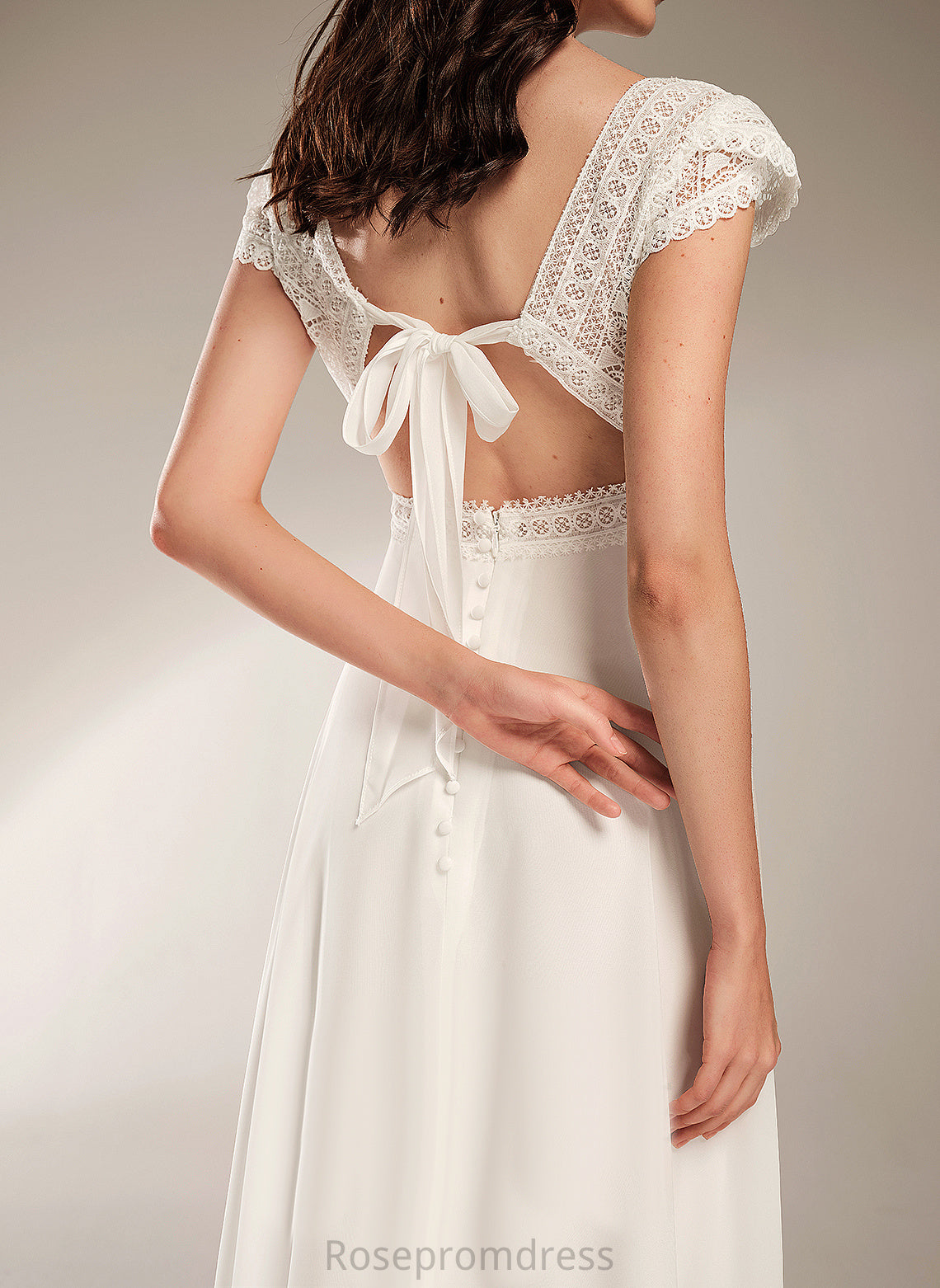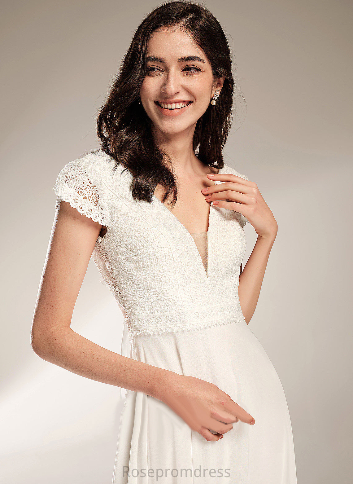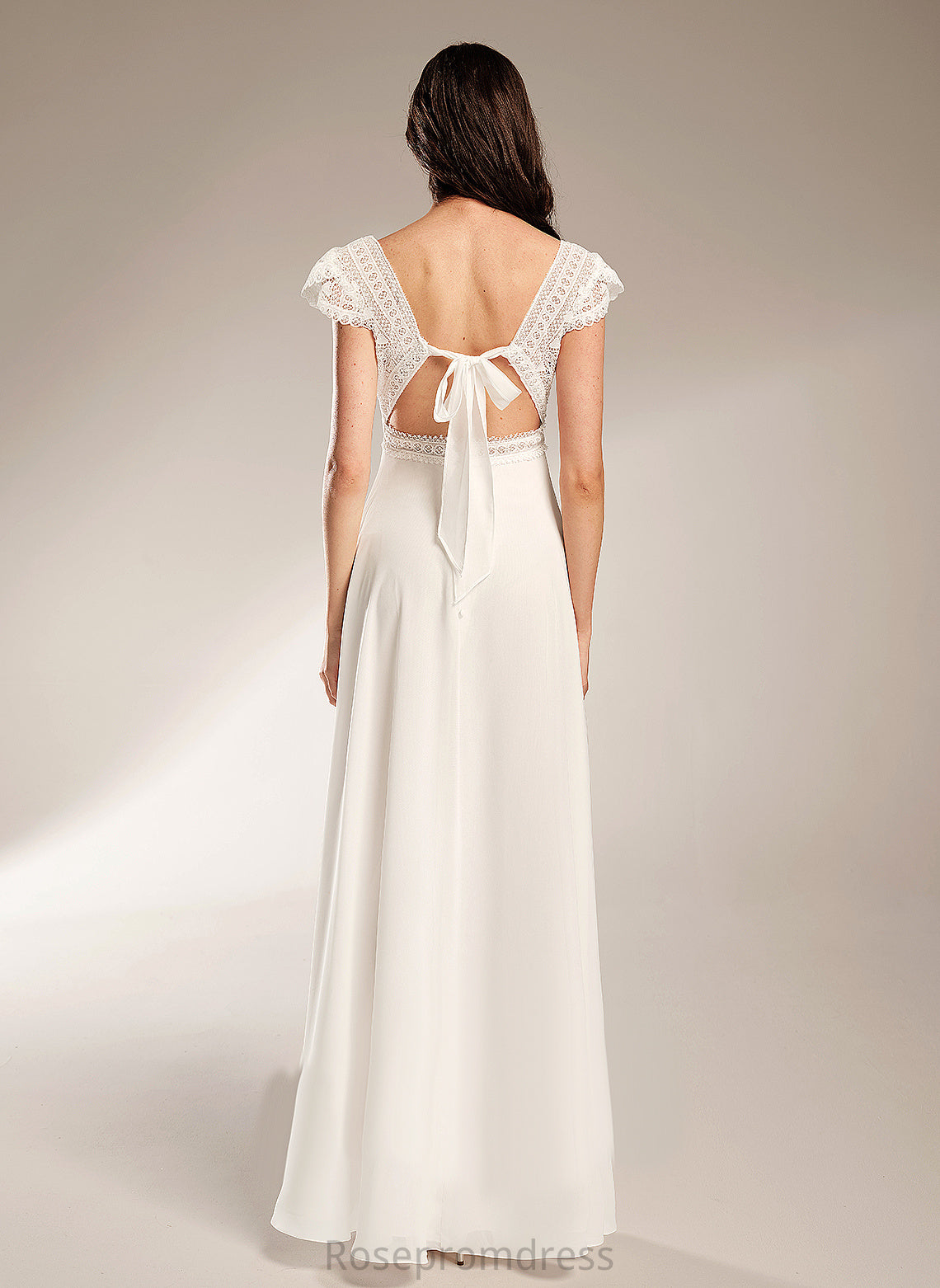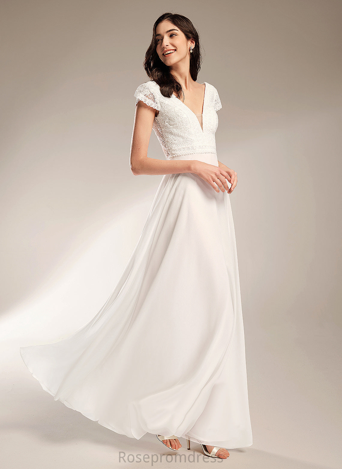 A-Line Lace Wedding Dresses Wedding Abbey Chiffon Dress V-neck Floor-Length