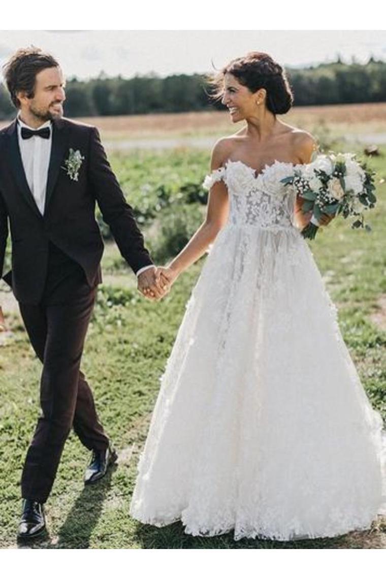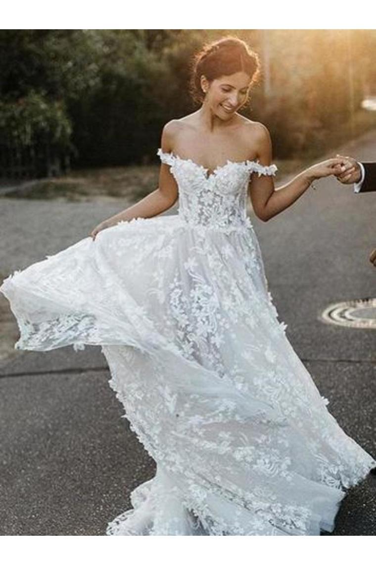 A-Line Off-The-Shoulder Boho Wedding Dress With Appliques