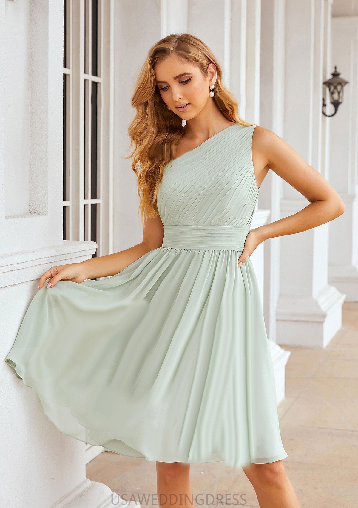 A-line One-Shoulder Sleeveless Chiffon Knee-Length Bridesmaid Dresses With Pleated Emely DSP0025379
