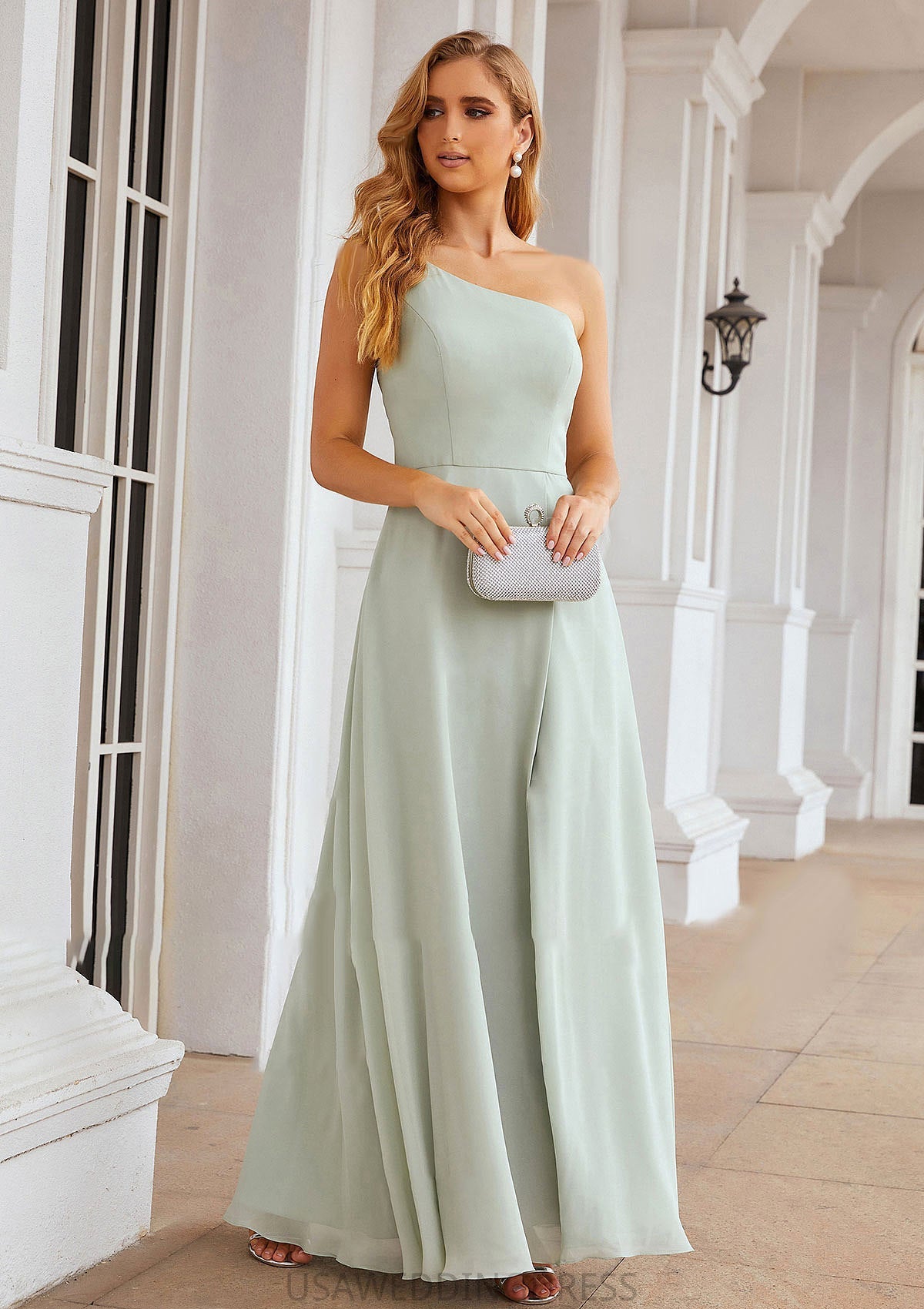 A-line One-Shoulder Sleeveless Long/Floor-Length Chiffon Bridesmaid Dresses With Split Dixie DSP0025333