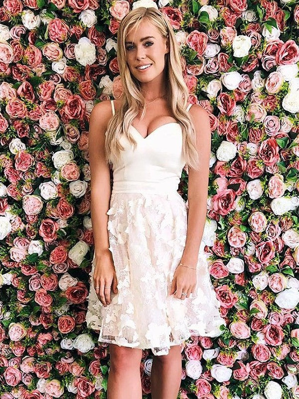 A-Line/Princess Applique Spaghetti Straps Sleeveless Knee-Length Kiana Satin Homecoming Dresses Dresses