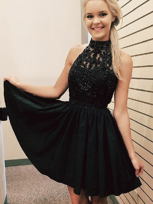 A-Line/Princess Halter Sleeveless Short/Mini Sanai Chiffon Homecoming Dresses Dresses