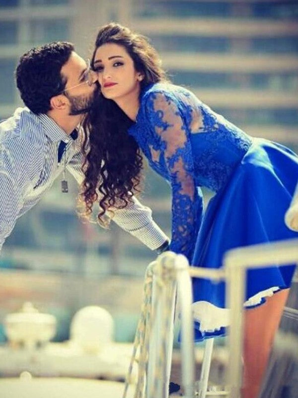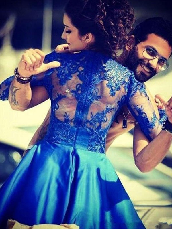 A-Line/Princess Jewel Long Sleeves Applique Short/Mini Hadassah Homecoming Dresses Satin Dresses