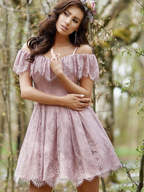 A-Line/Princess Ruffles Off-The-Shoulder Sleeveless Short/Mini Homecoming Dresses Lace Skyla Dresses
