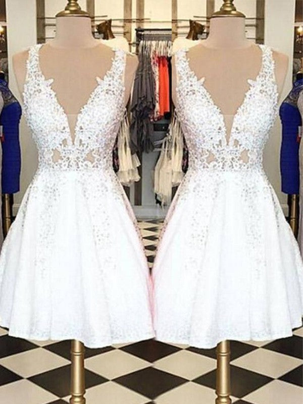 A-Line/Princess Sleeveless Bateau Lace Kaydence Homecoming Dresses Applique Short/Mini Dresses