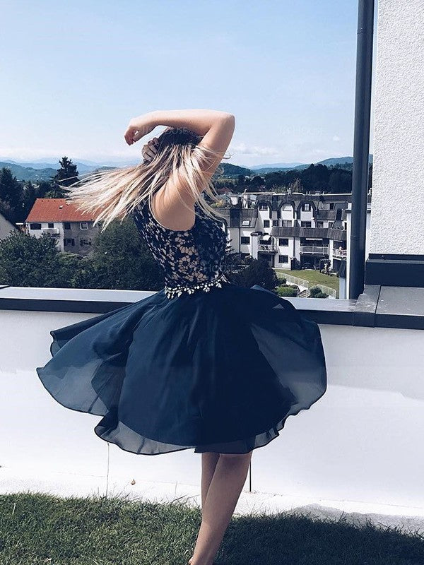 A-Line/Princess Sleeveless High Neck Beading Homecoming Dresses Chiffon Annabel Knee-Length Dresses