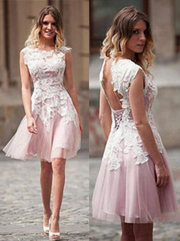 A-Line/Princess Sleeveless Scoop Applique Tulle Short/Mini Abigayle Homecoming Dresses Dresses