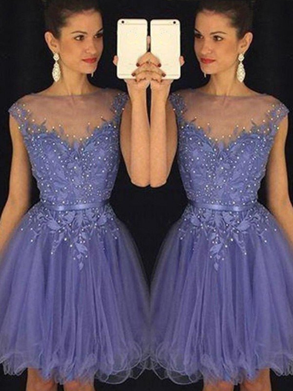 A-Line/Princess Sleeveless Scoop Applique Tulle Short/Mini Dresses Micaela Homecoming Dresses