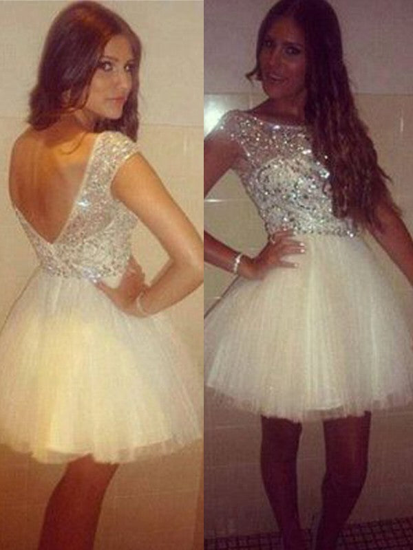 A-Line/Princess Sleeveless Scoop Beading Tulle Short/Mini Alena Homecoming Dresses Dresses