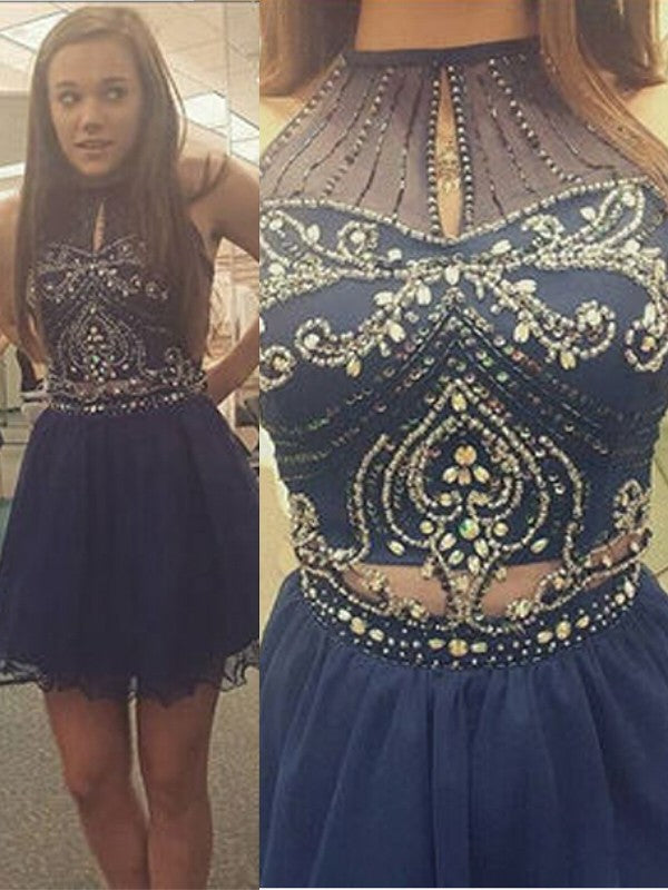 A-Line/Princess Sleeveless Scoop Beading Tulle Short/Mini Josephine Homecoming Dresses Dresses