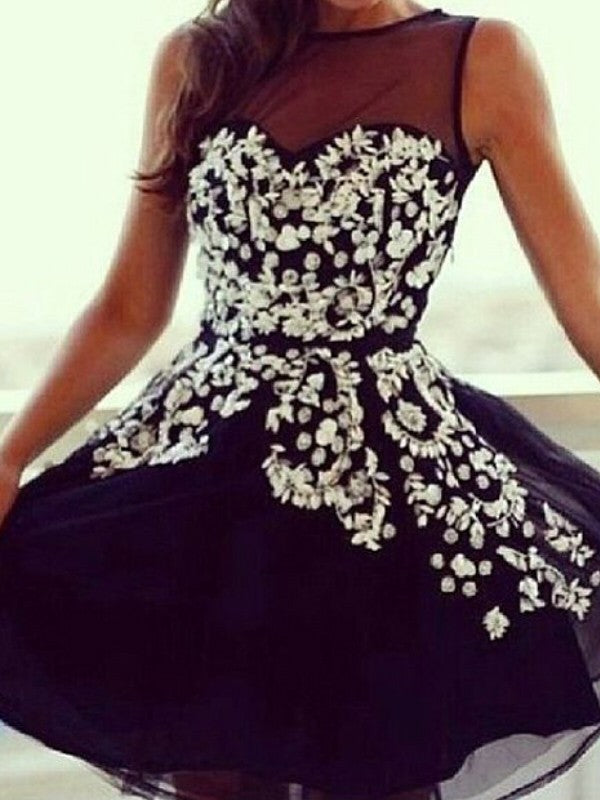 A-Line/Princess Sleeveless Scoop Rowan Homecoming Dresses Applique Tulle Short/Mini Dresses