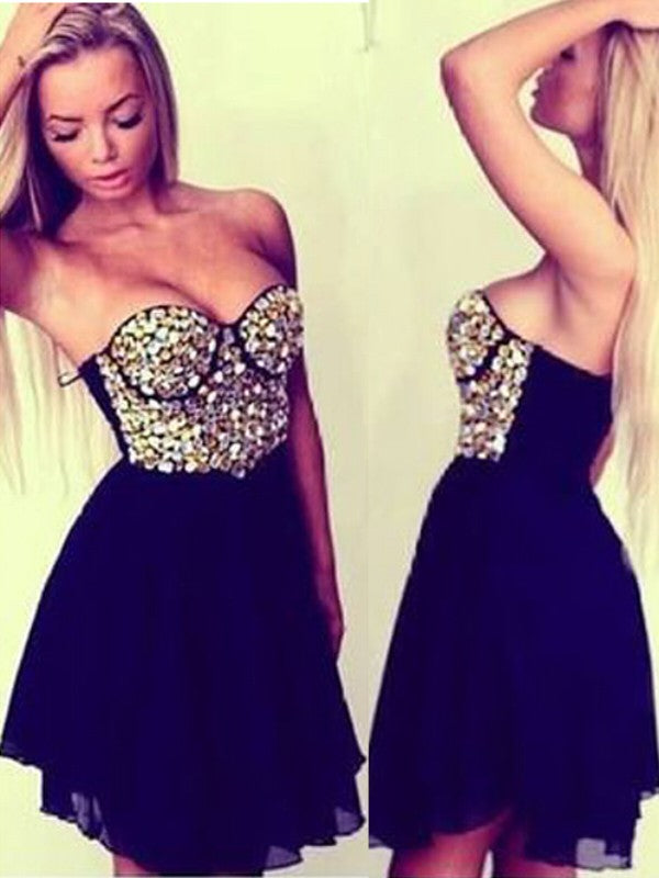 A-Line/Princess Sleeveless Sweetheart Beading Short/Mini Dresses Homecoming Dresses Chiffon Vanessa