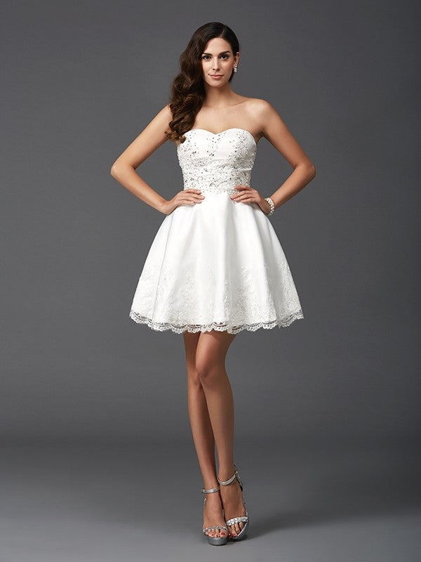 A-Line/Princess Sweetheart Beading Sleeveless Short Dresses Brielle Satin Homecoming Dresses